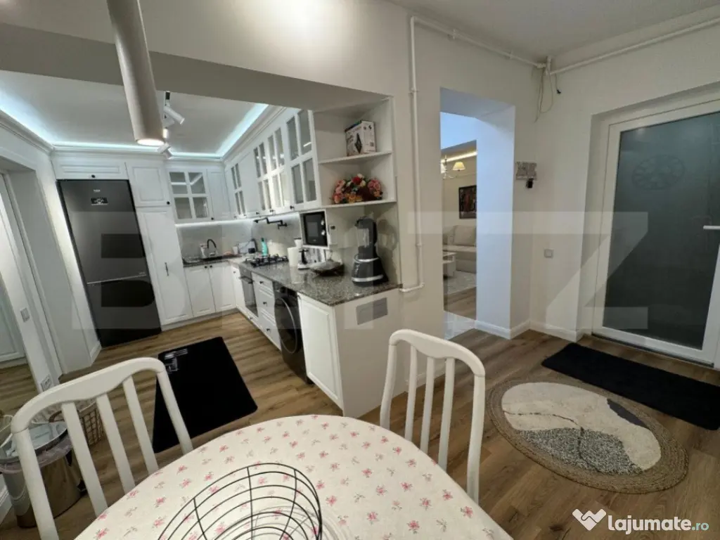Blitz va propune spre vanzare o casa individuala cu 3 camere, in cartierul Gruia, pe o strada linistita dar in acelasi timp ultracentrala. Casa este astfel compartimentata: living, bucatarie, 2 dormitore, 2 bai, pivnita si 2 incaperi amenajate in mansarda. Este finisata, mobilata si utilata de designer interior si beneficiaza de toate facilitatile, inclusiv aer conditionat. Partea frontala a curtii ofera un loc de parcare. Pentru mai multe detalii va rugam sa ne contactati. Cod ofertă / ID BLITZ: P142603 Id intern: P142603 Număr Băi: 2 Curent Apă Canalizare Gaz Climă
