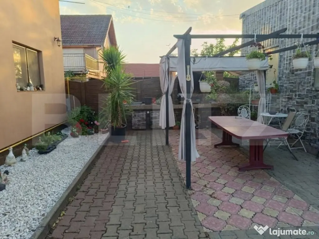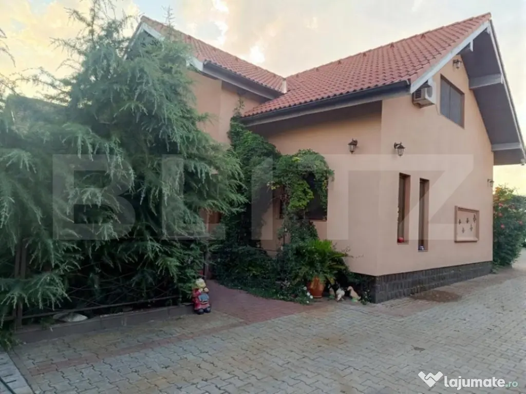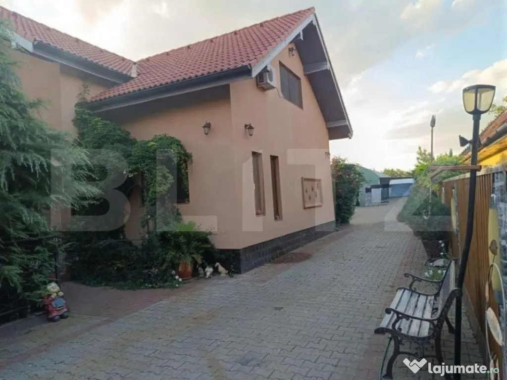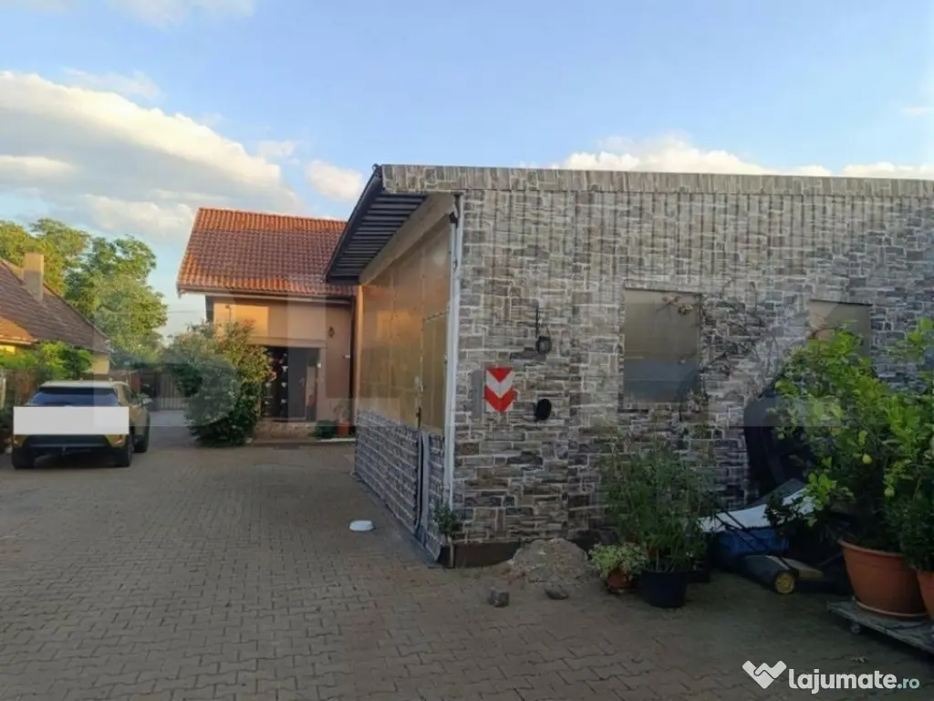 Proprietate individuală de vânzare în Utvin – locuință modernă, anexă tip autoservice, hală depozitare și teren generos Propunem spre vânzare o proprietate complet amenajată, situată la intrarea în localitatea Utvin, într-o zonă bine conectată, cu acces facil din șosea asfaltată și trotuare amenajate. Ansamblul imobiliar este ideal atât pentru rezidență, cât și pentru desfășurarea unei activități comerciale (service auto, depozitare, mică producție). Clădire principală – locuință P + mansardă (84 mp + 77 mp utili) – construită în 2014 Imobilul este construit din cărămidă Porotherm, izolat cu polistiren expandat și dotat cu tâmplărie premium Salamander, cu geam tripan 4 anotimpuri. Acoperișul este din țiglă, iar curtea este complet pavată. • Parter: două intrări, living spațios, bucătărie mobilată și complet utilată, un dormitor, o baie dotată cu cabină de duș. Parterul beneficiază de centrală proprie pe gaz. • Mansardă: hol generos, trei dormitoare, o baie complet amenajată cu cadă, plus acces către podul destinat depozitării. • Terasa: suprafață de 30 mp, ideală pentru relaxare. Teren și curte – 720 mp amenajați integral • Zonă dedicată de barbeque complet echipată: grătar, chiuvetă, cuptor pentru pizza și suport pentru ceaun. • Poartă de acces auto automatizată, culisantă. • Parcări amenajate pentru 4–5 mașini în fața imobilului, plus capacitate totală de până la 10 mașini în interiorul curții. • Spațiu verde îngrijit, cu brazi și plante ornamentale. • Utilități complete: gaz, curent trifazic (380V), apă și canalizare la rețea, internet și TV, plus foraj de apă propriu. Anexe – opționale la vânzare • Garaj dublu – 40 mp • Magazie / Hală – 97 mp, complet echipată pentru activități de autoservice, inclusiv elevator auto de 5 tone și dotări specifice. Ți-am stârnit interesul? Programează o vizionare! Cod ofertă / ID BLITZ: P158477 Id intern: P158477 Număr niveluri imobil: 1 Număr Băi: 2 Curent Apă Canalizare Gaz Climă