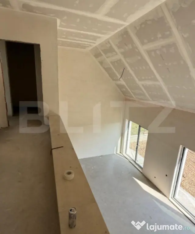 Etaj: 3 dormitoare, 2 bai, 1 balcon, 1 hol