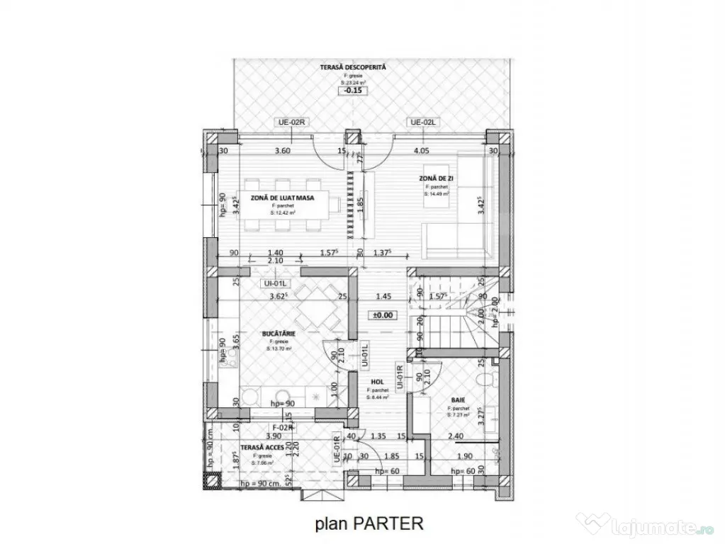 - Terasă generoasă de 23 mp