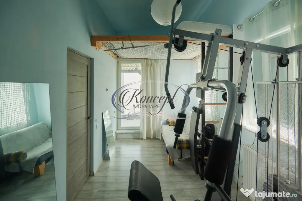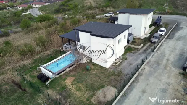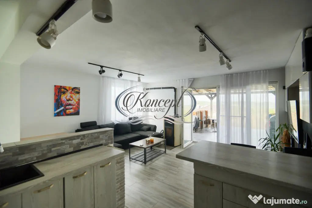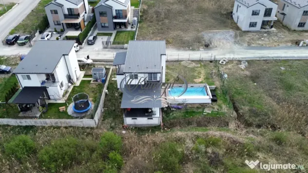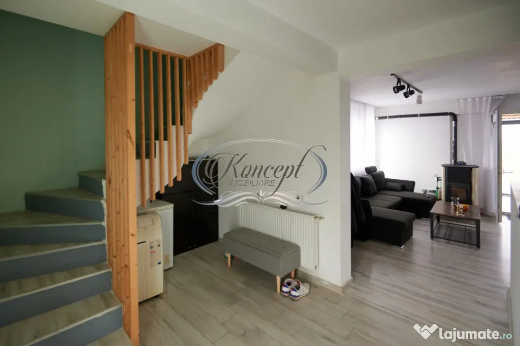 Proprietatea se inchiriaza complet mobilata si utilata, inclusiv cu bucatarie echipata cu electrocasnice, masina de spalat rufe, dotari pentru confortul zilnic, acces smart in locuinta si supraveghere video cu acces de pe telefon. Finisajele sunt medii, bine intretinute, iar casa este izolata exterior cu polistiren. Sistemul de incalzire este asigurat prin termosemineu pe peleti, iar apa calda este furnizata prin boiler electric. Imobilul dispune de toate utilitatile.