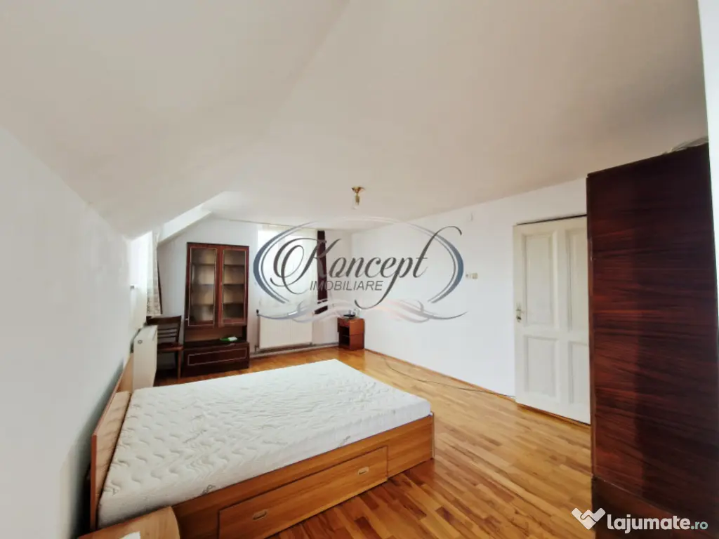 Koncept Imobiliare va ofera spre inchiriere o casa individuala situata in cartierul Marasti, in zona Pietei 1848, o locatie apreciata pentru accesul rapid catre centrul orasului si pentru caracterul sau linistit, potrivit pentru activitati profesionale cu trafic redus. Proprietatea are un regim de inaltime D+P+1+M si dispune de o suprafata utila de aproximativ 280 mp, fiind amplasata pe un teren generos de 400 mp. Casa beneficiaza de o compartimentare practica, gandita pentru a oferi functionalitate si flexibilitate in utilizare, fiind potrivita inclusiv pentru activitati de birou. La demisol sunt amenajate doua garaje inchise si o baie, oferind spatiu pentru parcare si depozitare. Parterul include o bucatarie generoasa cu loc de servit masa si spatiu de depozitare, un hol amplu si o baie. La etaj se regaseste un apartament dotat cu bucatarie proprie, doua camere separate si o baie cu acces din hol. Mansarda completeaza proprietatea cu o camera spatioasa si o baie dotata cu cada si geam pentru ventilare naturala. Casa dispune de doua centrale termice proprii cu incalzire prin calorifere, una dedicata zonei garajelor si una pentru restul locuintei, oferind eficienta si control asupra consumului. Tamplaria este din PVC cu geam termopan, iar proprietatea beneficiaza si de doua balcoane care adauga un plus de lumina si deschidere spatiilor interioare. Imobilul necesita renovare, oferind astfel posibilitatea amenajarii si adaptarii spatiilor in functie de nevoile viitorilor chiriasi. Proprietatea se inchiriaza in starea actuala, asa cum este prezentata in fotografii, sau se poate preda golita, la cerere. Prin amplasarea in zona Piata 1848 din Marasti, suprafata generoasa, compartimentarea pe mai multe niveluri si existenta garajelor, aceasta proprietate reprezinta o optiune potrivita pentru activitati de tip birou cu program redus si trafic limitat cu publicul, dar si pentru persoane care isi doresc un spatiu amplu aproape de zona centrala a orasului. Pentru informatii suplimentare, programarea unei vizionari sau pentru a afla oferta noastra completa va stam la dispozitie telefonic, prin e-mail sau la sediul agentiei noastre, pe str. Aviator Badescu, nr. 19, Cluj-Napoca. Id intern: P21205 Număr niveluri imobil: 1 Număr Băi: 4 Curent Apă Canalizare Gaz