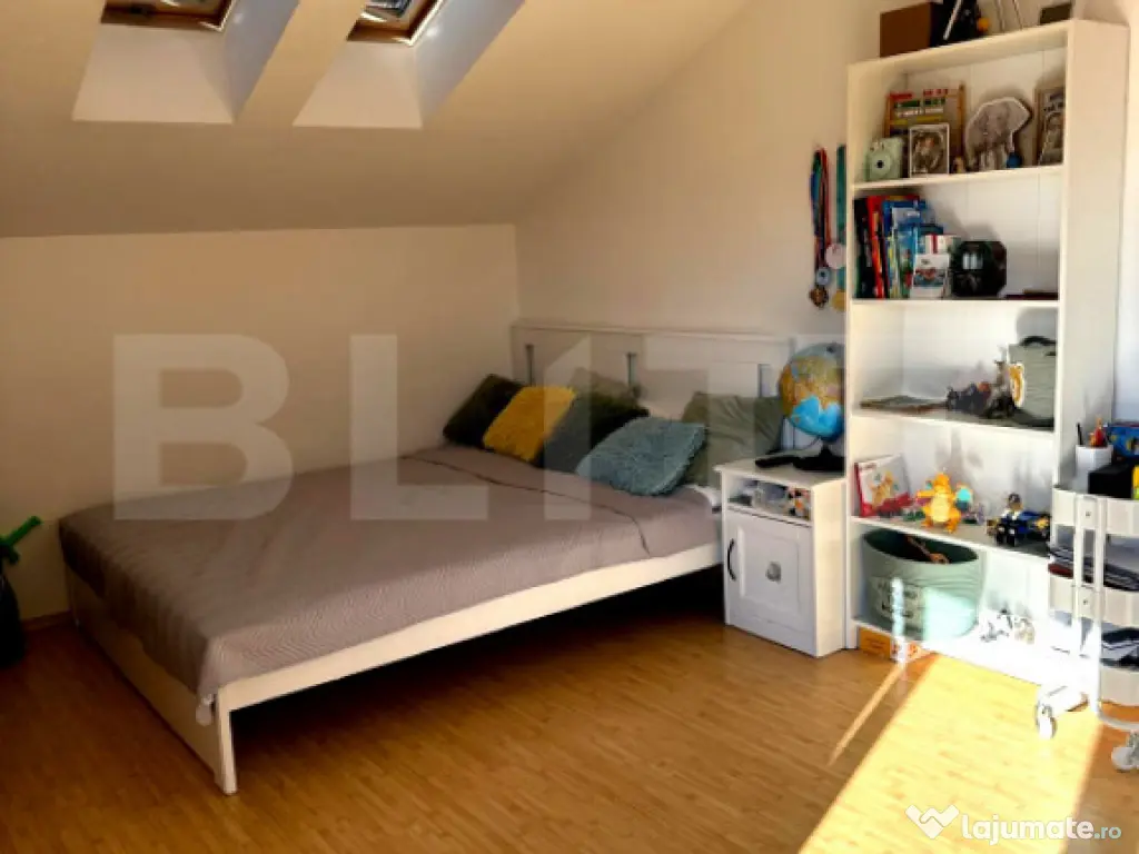 Blitz îți prezintă spre vânzare o casă individuală impecabilă, construită în 2008 și renovată complet în 2020, situată într-una dintre cele mai căutate zone rezidențiale din Timișoara. O proprietate ideală pentru o familie, ce combină confortul unui imobil modern cu funcționalitatea unei zone extrem de bine comunicate. Afară vei găsi o curte complet amenajată, cu gazon natural și sistem automatizat de aspersoare, zonă de relaxare și de grătar pe pavaj decorativ - pentru weekend-uri cu multe zâmbete alături de cei dragi. Înăuntru te așteaptă o compartimentare modernă și un design scandinav, aerisit, de care te vei putea bucura din prima zi deoarece casa se vinde complet mobilată și utilată. La parter vei observa încă din holul de la intrare un living spațios și luminos cu o bucătărie open-space, zonă de dining și coffee corner, o cameră ideală pentru un birou sau dormitor și o baie completă (cu duș walk-in și fereastră). La etaj sunt cele 2 dormitoare generoase, unul cu balcon, celălalt cu terasă și, între cele două camere, o a doua baie completă (cu cadă și fereastră). Din living ai acces atât la garajul propriu deasupra căruia este construit un spațiu de depozitare foarte bine gândit, cât și la terasa din curte. Imobilul este disponibil imediat, fără necesitatea unor investiții suplimentare. Sună și programează o vizionare! Cod ofertă / ID BLITZ: P169697 Id intern: P169697 Număr niveluri imobil: 1 Număr Băi: 2 Curent Apă Canalizare Gaz Sistem irigaţie Climă