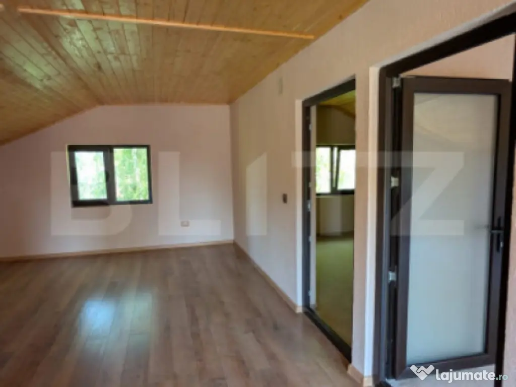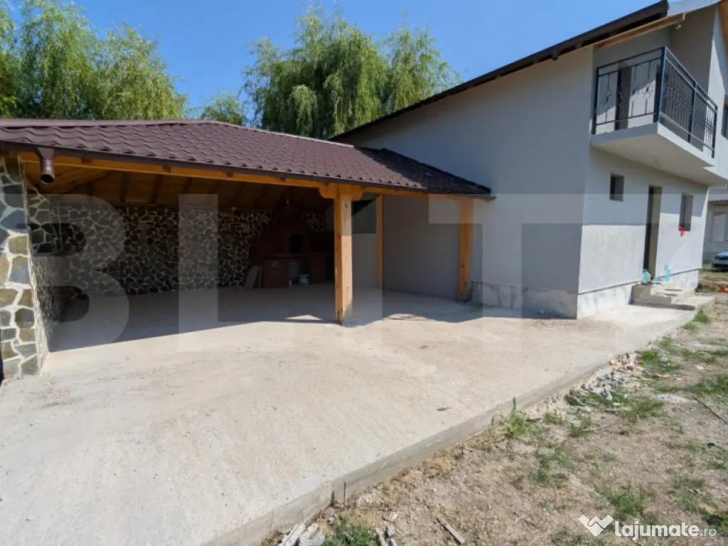 Parter: sufragerie spațioasă, bucătărie luminoasă, baie, terasă acoperită cu grătar