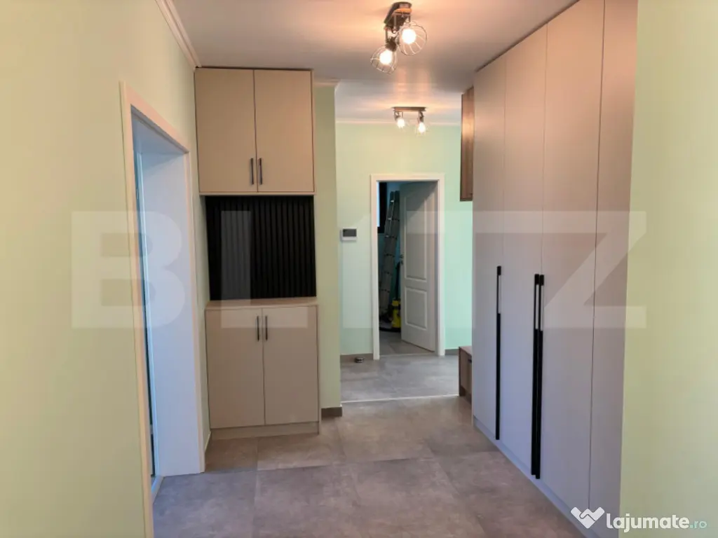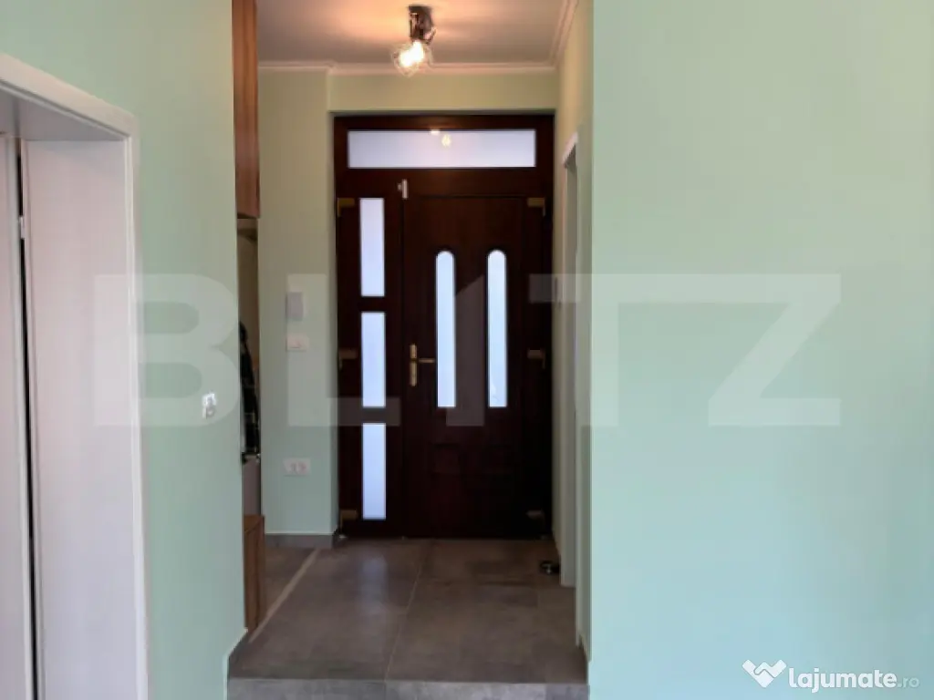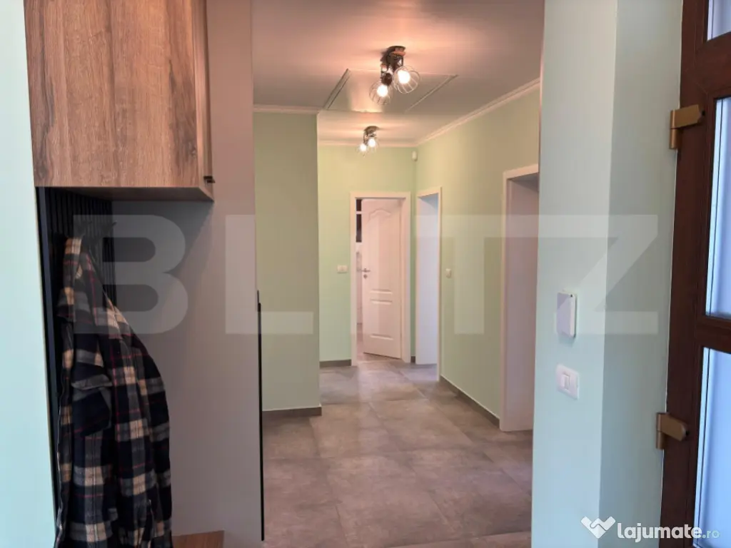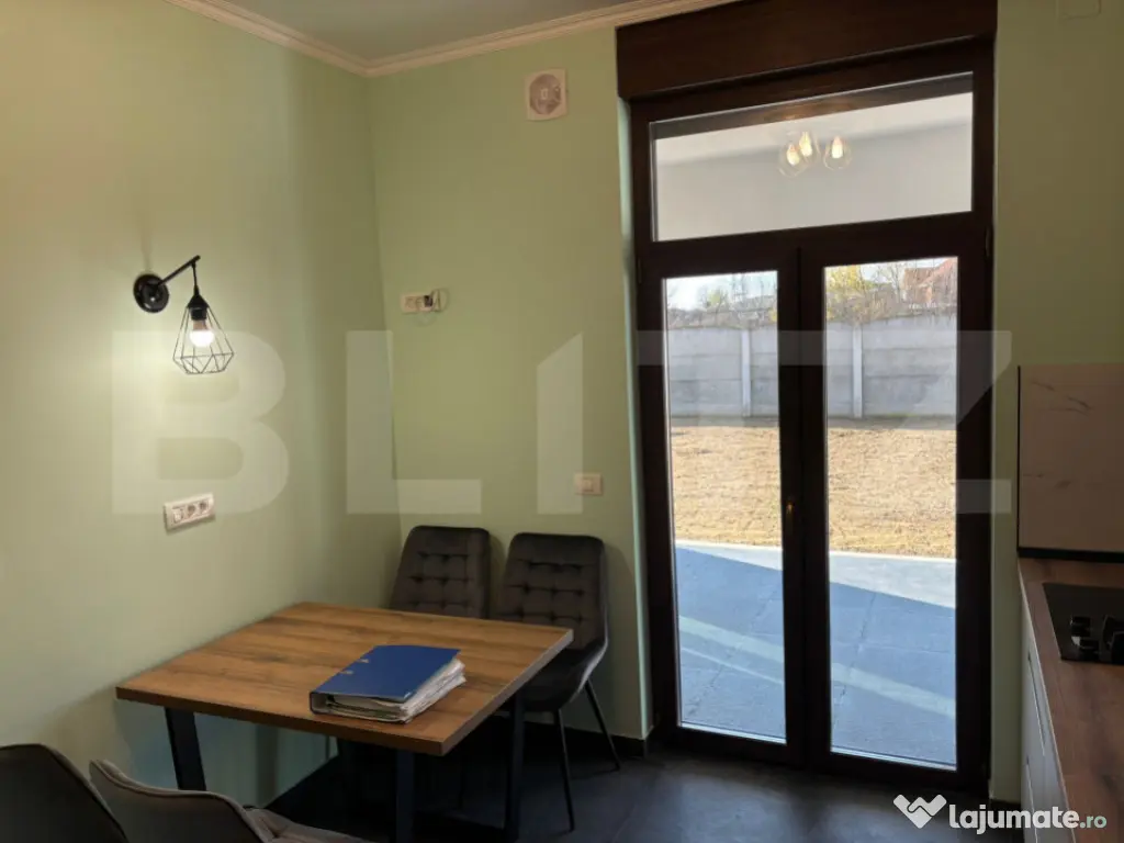 BLITZ va propune spre vânzare o proprietate deosebită, situată într-una dintre cele mai căutate zone rezidențiale din Ghiroda, ideală pentru cei care își doresc confort, liniște și acces rapid către oraș. Caracteristici principale ale locuinței: • Casă individuală nou construită • Suprafață teren: 519 m² • Suprafață utilă: 131 m² • Compartimentare funcțională și luminoasă: • 2 dormitoare – complet mobilate • Birou / cameră de studiu – semi-mobilat, perfect pentru work-from-home • Living spațios cu ieșire pe o terasa acoperita • Bucătărie complet utilată – electrocasnice noi, mobilier modern • 2 băi • Cameră tehnică • Geamuri tripan – izolare excelentă termică și fonică dotate cu jaluzele electrice si site anti-insecte, poarta de la intrare acționată electric prin telecomanda, carport, • Întreaga casă este nouă, amenajată cu materiale de calitate superioară și pregătită pentru mutarea imediată, încălzirea se face prin pardosea, centrala proprie pe gaz, sisteme de aer condiționat montate in fiecare camera. Localizare & beneficii: • Situată într-o zonă liniștită, cu trafic redus și comunitate prietenoasă • Conectivitate excelentă cu orașul – acces rapid la Timișoara, transport, magazine și puncte de interes • Ideală pentru familii sau persoane care caută o zonă verde și relaxată, fără a renunța la avantajele vieții urbane Pentru programarea unei vizionari sau detalii suplimentare va rugam sa ne contactați! Cod ofertă / ID BLITZ: P158771 Id intern: P158771 Număr Băi: 2 Curent Apă Canalizare Gaz Climă