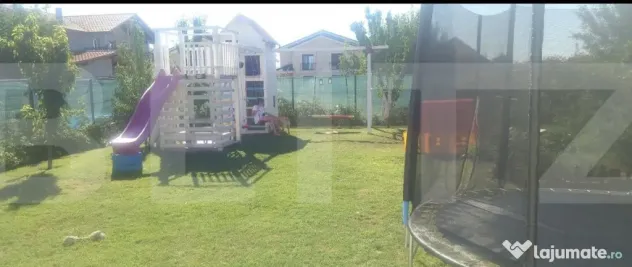 Curtea este spațioasă, amenajată cu pomi fructiferi și zonă pentru grădinărit, oferind un cadru ideal pentru un stil de viață sănătos și echilibrat. Aceasta dispune și de un loc de joacă pentru copii la alegerea clientului.