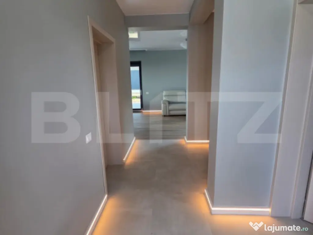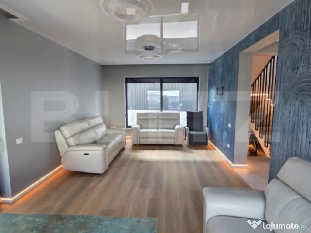 Blitz va prezinta o locuință modernă și confortabilă, amplasată într-o zonă deosebit de liniștită din Visan, locul ideal pentru cei care își doresc relaxare, intimitate și acces rapid către oraș. Detalii generale: Regim de înălțime: Parter + Etaj 1 Suprafață construită desfășurată: 180,7 mp Amprentă la sol: Teren: 495 mp An construcție: 2025 Detalii specifice: Timplarie Shuko, Tavane Barisol Constructie de caramida Pereti interiori acoperiti cu plasa, Pod izolat cu 15 cm de vata, Incalzire in pardoseala, var colorat in toate camerele, podele acoperite cu SPC (se comporta ca un parchet, dar mult mai rezistent) Plinta din duropolimer cu LED. Utilități: gaz, apă, canalizare – toate racordate și funcționale. Compartimentare: Parter: living spațios, bucătărie modernă inchisa, baie și zonă de acces către terasă generoasa de 24 m.p acoperita. Etaj: 3 dormitoare luminoase, baie principală, dresing, balcon Pod izolat, ideal pentru depozitare sau amenajare suplimentară Exterior: curte privată amenajabilă, potrivită pentru grădină, zonă de relaxare sau loc de joacă pentru copii. Pentru 7000 euro dezvoltatorul poate amenaja curtea cu gazon. Construită cu materiale de calitate și un design eficient, casa oferă un echilibru perfect între estetică, funcționalitate și confort. Casa se preda la stadiul de nemobilat. Va asteptam cu drag la vizionare! Cod ofertă / ID BLITZ: P158664 Id intern: P158664 Număr niveluri imobil: 1 Număr Băi: 2 Nr. locuri parcare: 2 Curent Apă Canalizare Gaz