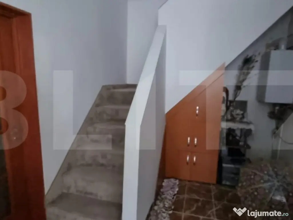 Blitz ofera spre vanzare casa individuala cu o suprafata utila de 110 mp / etaj, compusa din beci, parter, etaj si pod, La parter se afla bucataria, 2 dormitoare, holul, baia si casa scarii. La etaj sunt 3 camere, living-ul, baia si o terasa inchisa. Parterul a fost reconditionat in 2000 cand s-a construit si etajul. Casa este construita din caramida, bca cu structura de beton si este izolata cu polistiren. Pe terenul cu o suprafata totala de 273 mp se mai afla si un garaj. Cod ofertă / ID BLITZ: P13970 Id intern: P13970 Număr niveluri imobil: 1 Număr Băi: 2 Nr. locuri parcare: 1 Curent Apă Canalizare Gaz