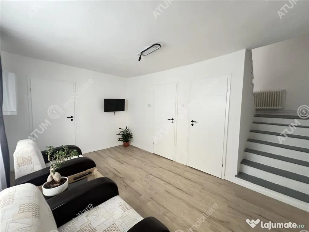 De vanzare casa individuala complet renovata in 2024 compusa din 4 camere decomandate cu pivnita de aproximativ 13 mp anexe, in suprafata totala de 175 mp, pozitionata pe un teren de 461 mp situata in zona Turnisor din Sibiu. Atat imobilul cat si anexele insumeaza amprenta de 130 mp astfel din terenul total de 461 mp care are deschiderea de 10 m permite accesul auto iar terenul liber este de 331 mp. Suprafata de teren libera este impartita in curtea din fata unde se pot parca 2 autoturisme si o zona decorativa cu arbusti si flori iar curtea din spate este amenajata cu zona de grill, 2 anexe care pot deservi ca si filigorie, iaz cu pesti, plante decorative si gradina dedicata agriculturii. Casa este structura pe Subsol Parter Pod iar suprafata utila este de 145.00 mp, aceasta fiind compusa la Parter dintr-o camera care poate deservi fie ca si dormitor fie ca si living de 21.40 mp, bucataria separata cu camara si dinning de 24.00 mp, un hol spatios de 24.00 mp care poate fi amenajat cu o garderoba destinata primirii sau chiar ca o camera de zi si baia 4.60 mp dotata cu geam de aerisire. La etaj se afla 3 dormitoare dintre care dormitorul matrimonial de 21,40 mp iar celelalte 2 dormitoare de 11,70 mp, holul prin intermediul caruia se face accesul in fiecare camera 24.00 mp si o baie de 4,60 mp dotata cu geam. Separat de suprafata utila casa mai detine si un balcon aproximativ 5 mp in care accesul se face din holul de la etaj. Imobilul a fost renovat in anul 2024 iar acesta dispune de dotari si finisaje precum: pentru accesul in imobil usi din PVC izolatoarea termic si fonic, tamplarie PVC cu geam termopan culoarea nucului si rulouri la toate geamurile, centrala termica Viessman si calorifere din otel, usi din lemn, parchet laminat de trafic intens, gresie, faianta, obiecte sanitare, scafe cu iluminat led si spoturi, instalatie electrica si termica din cupru. Imobilul a fost edificat in anul 1999 pe structura portanta din beton si zidarie exterioara din caramida cu grosimea de 30 cm care este placata cu termosistem exterior din polistiren expandat de 10 cm cu densitatea EPS 80 si zugravit cu vopsea decorativa siliconata. Acoperis este tip sarpanta cu invelitoare din tigla. Valoarea de achizitie a imobilului este de 239.000 euro negociabil, acesta poate fi achizitionat si prin accesarea unui credit bancar. ID intern: 2756. Număr Băi: 2 Posibilitate parcare: Da Nr. locuri parcare: 2 Curent Apă Canalizare Gaz Subsol