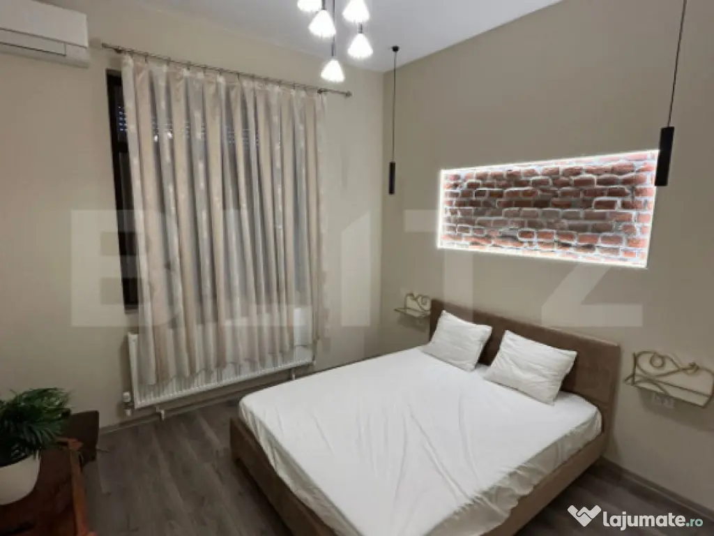 Blitz vă propune spre vânzare o casă individuală, cu parter și demisol, renovată integral în anul 2024, situată într-o zonă excelentă din cartierul Lipovei, la doar câteva minute de Iulius Mall. Proprietatea este amplasată pe un teren generos de 660 mp, complet amenajat și împrejmuit, oferind intimitate, confort și multiple posibilități de utilizare. Compartimentare și suprafețe: Parter: ~130 mp utili + garaj de ~30 mp Parterul dispune de un antreu comun și este compartimentat în două apartamente distincte, fiecare cu hol, dormitor, baie, living și bucătărie open-space. Compartimentarea permite unificarea facilă a celor două apartamente, rezultând o locuință unifamilială amplă, cu spații generoase și funcționale. Apartamentele sunt complet mobilate și utilate, fiind pregătite pentru utilizare imediată, atât pentru locuire, cât și pentru închiriere pe termen lung sau regim hotelier. Demisol: ~ 48 mp utili Include două camere spațioase și o cameră tehnică, cu utilizări multiple (depozitare, birou, spațiu hobby). Dotări și facilități: clădire izolată termic cu polistiren; acoperiș din țiglă; încălzire prin calorifere, centrală termică pe gaz; sistem de irigații automatizat pentru gazon; poartă de acces automatizată; încuietori inteligente cu cod pentru acces securizat; racordare la toate utilitățile: curent, gaz, apă, canalizare; curte amenajată cu pavaj și gazon; gard perimetral de calitate. Utilizări posibile: Proprietatea este pretabila atât pentru locuință individuală sau multifamilială, cât și pentru activități comerciale. Cod ofertă / ID BLITZ: P162203 Id intern: P162203 Număr Băi: 2 Curent Apă Canalizare Gaz Sistem irigaţie Climă
