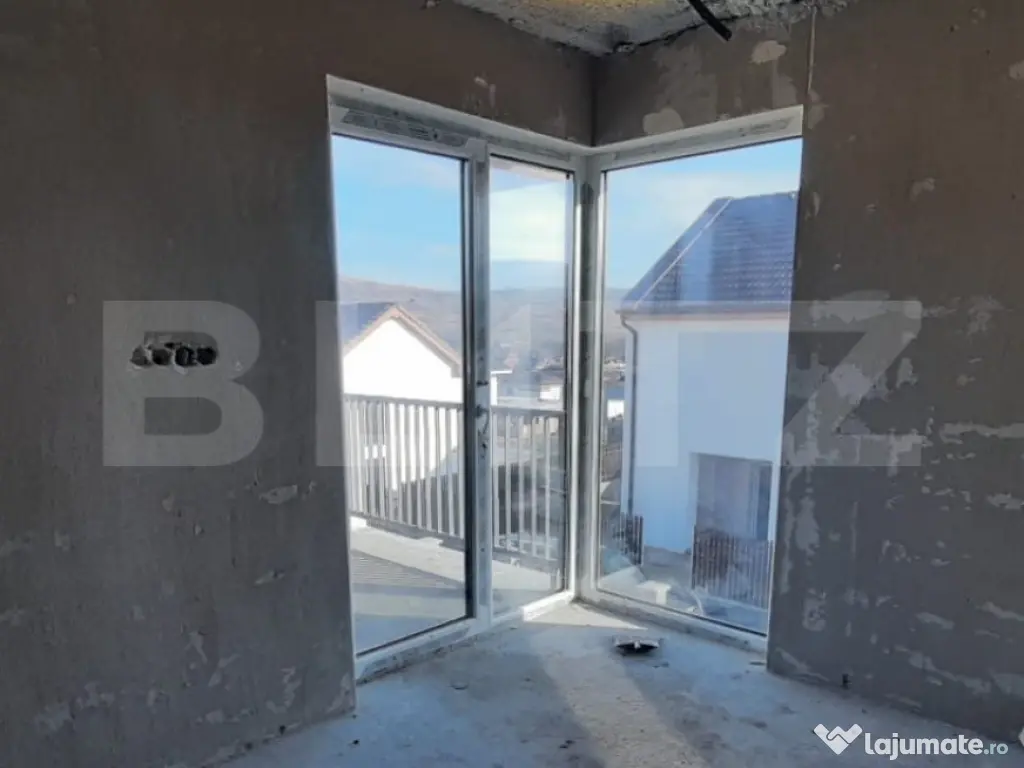 BLITZ oferă spre vânzare o casă individuală, situată într-o zonă în plină dezvoltare din Chinteni. Proiectul îmbină confortul designului arhitectural cu funcționalitatea modernă, având un regim de înălțime P+E+Pod. Proprietatea dispune de o suprafață utilă de 150 mp, amplasată pe un teren de 550 mp. Compartimentare atent realizată: -Parter: hol de acces, debara, bucătărie, cămară, grup sanitar, living cu acces către terasă acoperită, garaj de 28 mp; -Etaj: hol de acces, 3 dormitoare (unul cu baie proprie și dressing), 1 grup sanitar și 2 terase; -Pod: posibilitate de amenajare pentru a fi locuit, cu suprafață de 30 mp. Construcția este realizată din cărămidă, izolată termic, asigurând confort termic și durabilitate. Locuința se predă la stadiul de semifinisat și include următoarele dotări: centrală termică prin condensare, încălzire în pardoseală, instalații electrice și sanitare trase pe poziții, geamuri termopan de calitate, pereți gletuiți și șapă autonivelantă, tencuială exterioară. Reprezintă o locuință excelentă pentru cei ce caută un cămin cu spații generoase, într-o zonă cu case moderne, aproape de pădure. Pentru o experiență completă și mai multe detalii vă așteptăm la o vizionare! Cod ofertă / ID BLITZ: P159931 Id intern: P159931 Număr niveluri imobil: 1 Număr Băi: 3 Curent Apă Canalizare Gaz