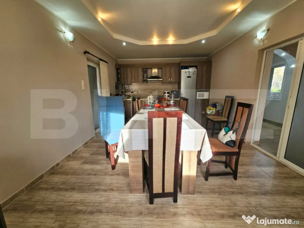 Blitz oferă spre vânzare o casă spațioasă și bine compartimentată, ideală pentru o familie care își dorește confort și funcționalitate într-o zonă liniștită din Dumbrăvița. Casa este amplasată pe un teren de 1000mp, oferind intimitate și multiple posibilități de amenajare. Proprietatea este destinată uzului rezidențial și dispune de: •⁠ ⁠1 bucătărie, 3 băi, 3 dormitoare, 6 terase, 4 locuri de parcare. Suprafețele generoase includ: •⁠ ⁠Suprafață utilă: 160 m² •⁠ ⁠Suprafață teren: 1.000 m² •⁠ ⁠Front stradal: 14 m Construcția este finalizată, realizată din cărămidă, cu regim de înălțime P+M, construită în 2008. Această locuință oferă un echilibru perfect între spațiu interior și exterior, fiind potrivită pentru cei care apreciază intimitatea, dar și accesul facil la facilități urbane. Pentru mai multe detalii și programarea unei vizionări, nu ezitați să ne contactați! Cod ofertă / ID BLITZ: P158579 Id intern: P158579 Număr niveluri imobil: 1 Număr Băi: 3 Curent Apă Canalizare Gaz Sistem irigaţie