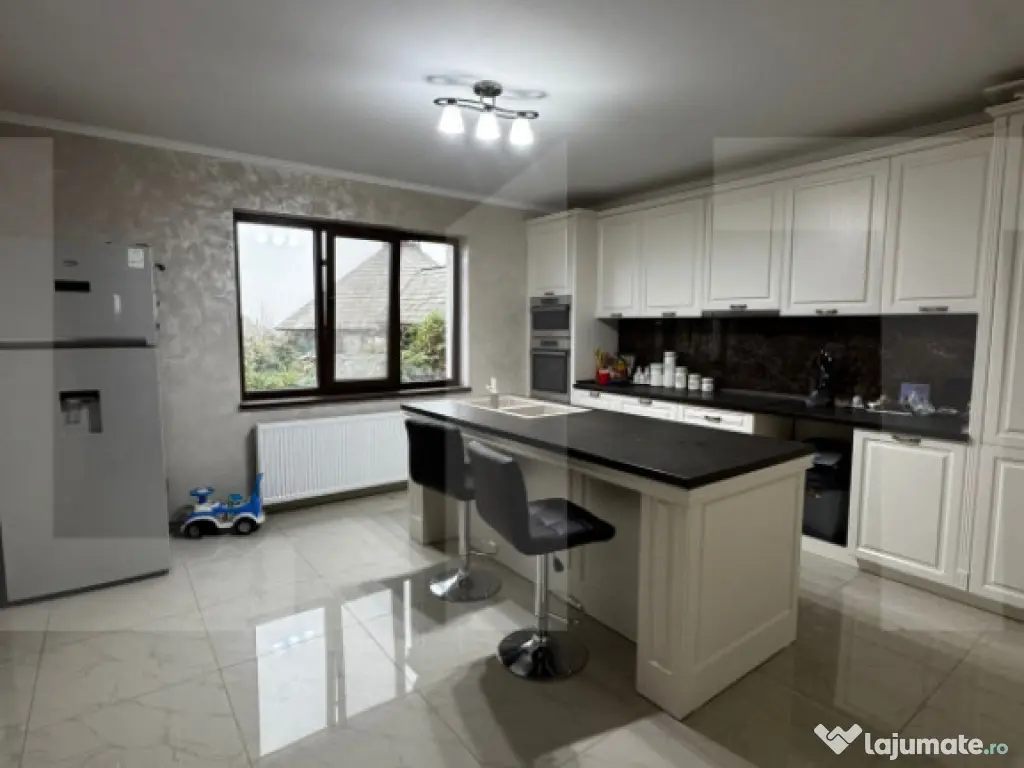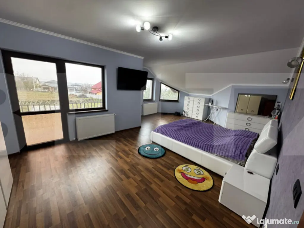 BLITZ vă prezintă spre vânzare o casă superbă, ideală pentru cei care caută liniște, spațiu și un stil de viață confortabil, situată în apropierea orașului Botoșani, în căutata zonă Cişmea. Proprietatea se remarcă prin dimensiuni generoase, compartimentare funcțională și un teren spectaculos de 988 mp, care oferă intimitate și numeroase posibilități de amenajare. Casa dispune de o suprafață utilă de 315 mp, distribuită pe parter, etaj și pod, fiecare nivel fiind gândit pentru a oferi confort și eleganță. ???? Parter – spațiu deschis, lumină și locul perfect pentru familie Parterul impresionează printr-un living foarte spațios și luminos, ideal pentru serile petrecute alături de familie sau pentru momentele de relaxare. Atmosfera primitoare este completată de o bucătărie modernă, amenajată cu bun gust, mobilată nou și gândită pentru a oferi funcționalitate maximă. Tot aici găsim o baie de serviciu, precum și accesul către terasa generoasă, unde se află un grătar amenajat, perfect pentru cine în aer liber, seri de vară sau întâlniri cu prietenii. Terasa și grătarul transformă spațiul exterior într-un adevărat colț de vacanță în propria curte. Parterul este completat de: cameră tehnică cu centrală proprie, beci spațios, ideal pentru depozitare, garaj mare, potrivit pentru mașină și spațiu suplimentar pentru unelte sau echipamente ????️ Etaj – confort, intimitate și spațiu pentru toată familia Etajul cuprinde 4 dormitoare generoase, luminoase și bine poziționate, ideale pentru o familie numeroasă sau pentru cei care au nevoie de spații de birou, camere de oaspeți sau zone dedicate hobby-urilor. Dormitorul matrimonial este amplu, elegant și beneficiază de ieșire directă în balcon, oferind momente de liniște și priveliști încântătoare. Etajul include și o baie spațioasă, precum și două balcoane, care adaugă un plus de confort și aerisire spațiului. ???? Pod și exterior – spațiu generos și natură la tine acasă Deasupra etajului se află un pod mare, ideal pentru depozitare sau chiar pentru amenajări ulterioare. Curtea este un adevărat atu al proprietății – aproape 1.000 mp de teren, completat de o livadă îngrijită, perfectă pentru cei care iubesc natura și fructele crescute chiar acasă. Această casă reprezintă o oportunitate unică pentru cei care își doresc un cămin luminos, încăpător, complet utilat și amplasat într-o zonă liniștită, dar foarte accesibilă. O locuință primitoare, modernă și gata să devină acasă pentru o nouă familie. Cod ofertă / ID BLITZ: P158647 Id intern: P158647 Număr niveluri imobil: 1 Număr Băi: 2 Curent Apă Canalizare Gaz