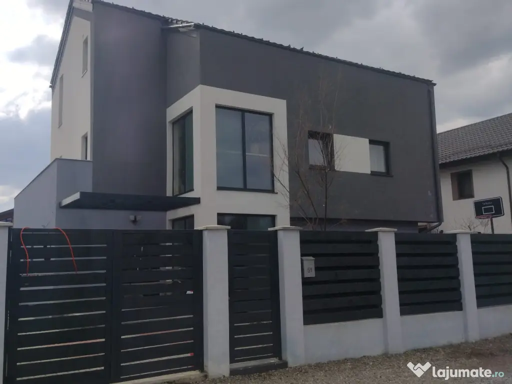 Curtea are acces auto si in ea se afla zona de gazon, gradina, o mica sera,padoc pentru caini si o terasa generoasa pentru relaxare.