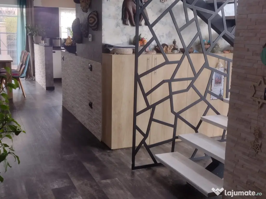 Compartimentarea proprietatii este generoasa si versatila: cu living larg, decorat de 1 acvariu amplu, 5 camere decomandate, cu terase, bai indivuduale si spatioase, camera tehnica si camera spalatorie. Interiorul nu necesita reparatii si finisaje.
