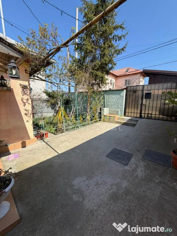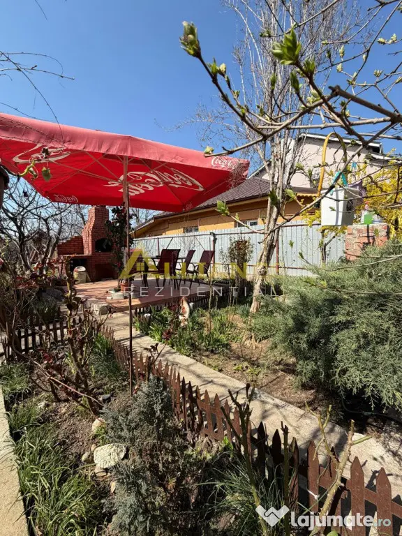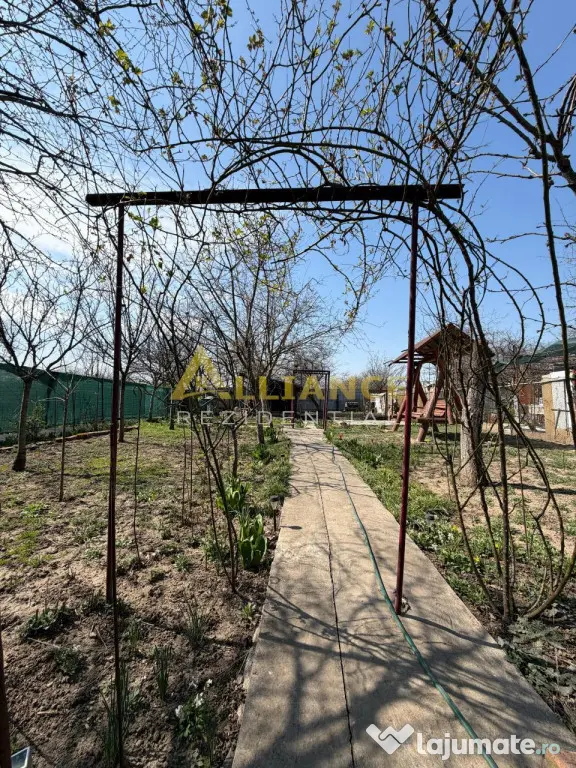 Curte cu pomi fructiferi si gratar din caramida
