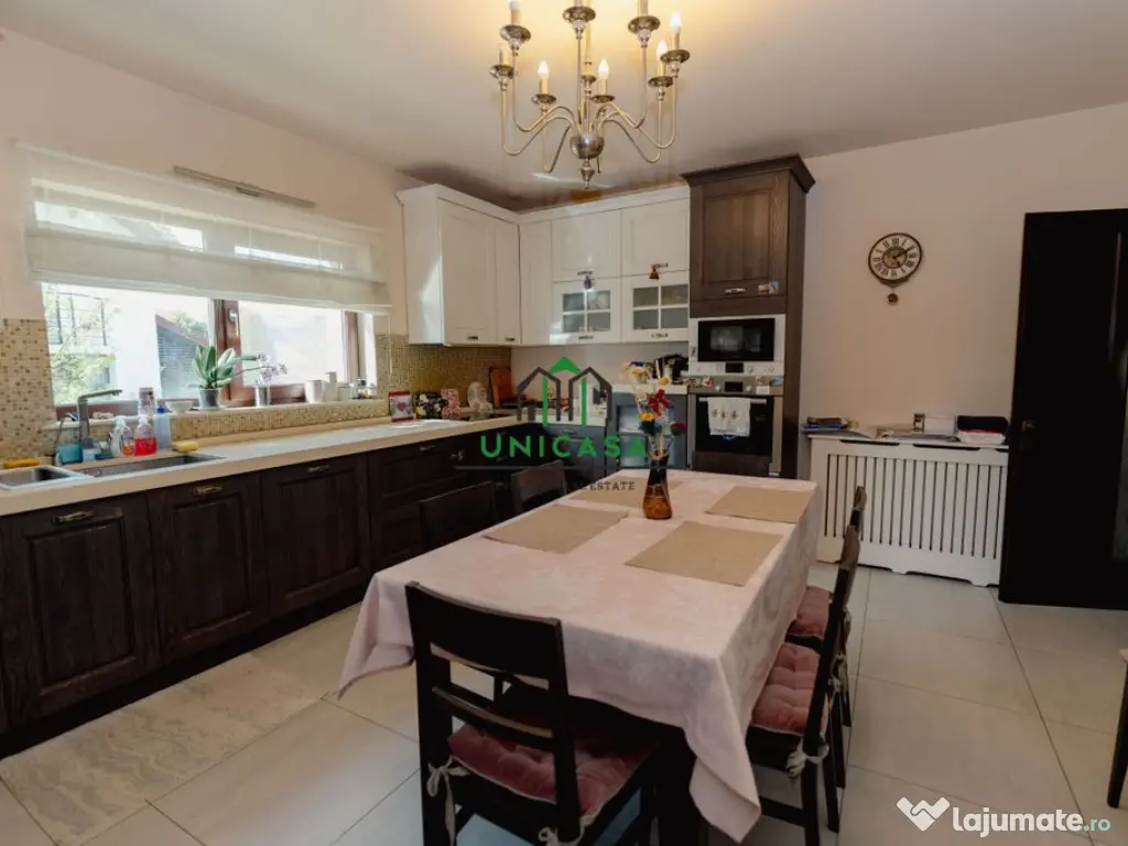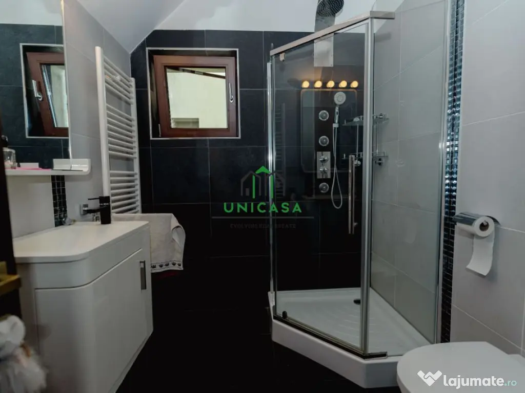 Pe o stradă liniștită din Vlădești, la doar câteva minute de forfota orașului și de liniștea Parcului Zăvoi, se află o casă care pare desprinsă dintr-un colț de vis. O proprietate care nu este doar o simplă locuință, ci un spațiu în care viața se desfășoară armonios, între rafinament, natură și confort. Cu un teren de 1.780 mp, această casă te întâmpină cu o grădină matură, atent îngrijită, unde fiecare colț pare să spună o poveste – despre dimineți cu soare lângă piscină, despre seri în foișor cu prietenii, despre liniștea pe care doar natura ți-o poate dărui. În spatele curții, ascunsă discret, o anexă cu baie, zona barbeque, o camera și afumătoare păstrează tradiția vie, oferind locul perfect pentru momente speciale. Construită solid, cu o amprentă la sol de 123 mp și o suprafață desfășurată de 260 mp, casa se deschide către tine cu un hol luminos, scăldat de lumina vitraliului care învăluie casa scării. Bucătăria este complet echipată, cu spații de depozitare generoase, iar livingul devine rapid locul preferat al familiei – un spațiu cald, dominat de șemineu, unde iarna capătă un farmec aparte. Terasa se leagă firesc cu foișorul, făcând legătura între interiorul primitor și exteriorul plin de verdeață. Etajul găzduiește trei dormitoare, dintre care cel matrimonial beneficiază de baie proprie, în timp ce mansarda devine tărâmul copiilor – un spațiu liber, creativ, cu colțuri gândite pentru studiu și joacă. Terenul este dotat cu sistem de irigație prin aspersoare, puț și fântână, iar sistemul de organizare exterior oferă tot confortul necesar unei vieți liniștite și ordonate. Fiecare element al acestei proprietăți a fost gândit nu doar pentru utilitate, ci pentru a construi acasă un sentiment – acela că ai ajuns exact acolo unde trebuie. Această casă nu este doar de vânzare – este gata să primească o nouă poveste. Poate chiar a ta. 0749.136.591 Ana Maria Sbarcea Număr niveluri imobil: 2 Număr Băi: 3 Posibilitate parcare: Da Nr. locuri parcare: 2 Curent Apă Canalizare Gaz Sistem irigaţie Încălzire Climă
