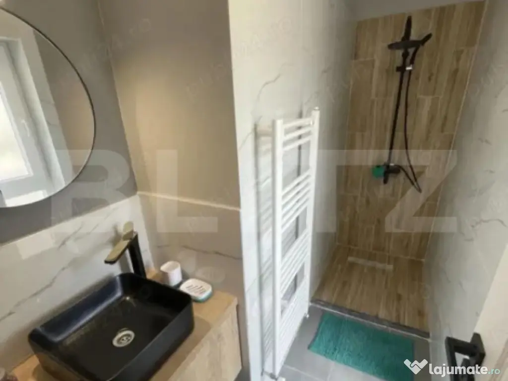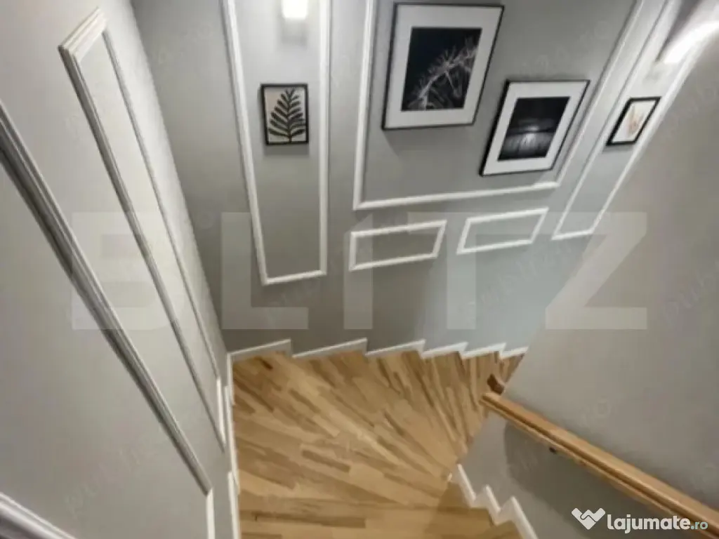Casă înșiruită cu 4 camere, terase generoase, 2 garaje subterane și boxă – complex rezidențial închis Spre vânzare casă înșiruită situată într-un complex rezidențial închis, ideală pentru familii care își doresc liniște, siguranță și un mediu plăcut de locuit. Locuința dispune de 81,8 mp utili, la care se adaugă terasă acoperită la intrare de 12,6 mp, terasă în partea din spate de aproximativ 30 mp, amenajată cu grătar, precum și balcon de 5,44 mp. Compartimentarea este practică și bine organizată: Parter: living spațios cu bucătărie open-space baie de serviciu hol Etaj: 3 dormitoare 2 băi hol balcon Confortul termic este asigurat de centrală termică proprie cu încălzire prin calorifere. Proprietatea se vinde mobilată și utilată, conform imaginilor de prezentare. Un avantaj important îl reprezintă faptul că în preț sunt incluse 2 garaje subterane și o boxă de depozitare, oferind spațiu suplimentar pentru depozitare și parcare. Imobilul este amplasat într-un complex rezidențial închis, cu acces securizat, care dispune și de parc pentru copii, într-o zonă liniștită, potrivită pentru viața de familie. Cod ofertă / ID BLITZ: P167194 Id intern: P167194 Număr niveluri imobil: 1 Număr Băi: 3 Curent Apă Canalizare Gaz