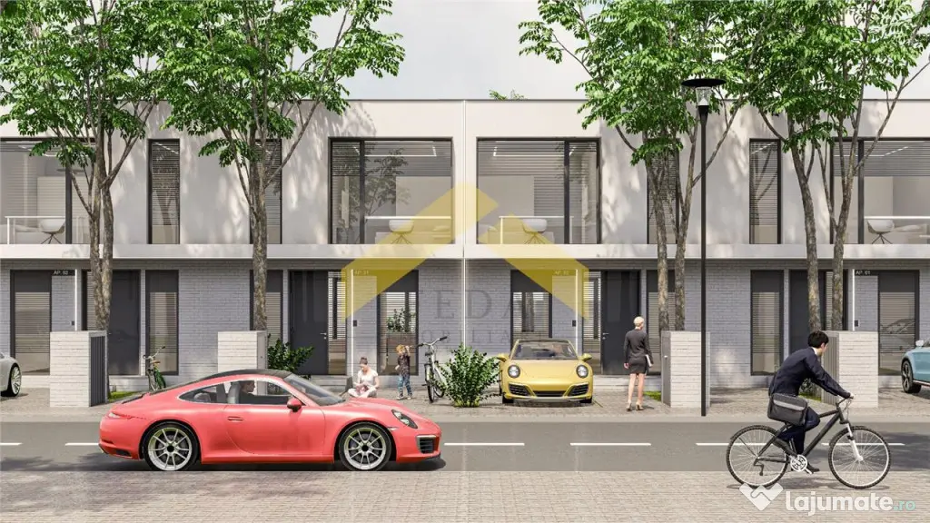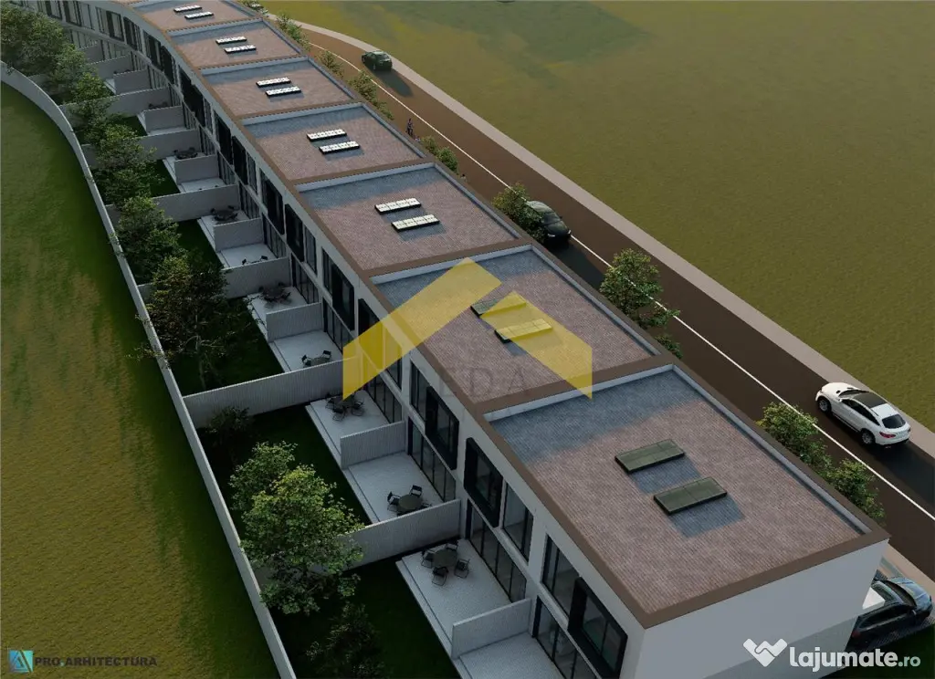 FEDA Imobiliare va ofera spre vanzare o casa insiruita premium intr-o locatie exclusivista, langa centrul comercial AFI Arad, cu acces facil la toate punctele de interes. Proiectul este in curs de dezvoltare si se preda cu finisaje premium alese de cumparator. Termenul de finalizare este intre 8 si 12 luni, in functrie de momentul semnarii contractului si personalizarea finisajelor. Casa are un regim de inaltime P 1E cu o suprafata utila de 97 mp si o suprafata construita de 120 mp. Terenul aferent proprietatii este de 150 mp (amprenta la sol 60 mp).Casa este compusa din: Parter:-Camera tehnica 2.50 mp-Baie de serviciu 1.60 mp-Hol acces 5.27 mp-Bucatarie 11.15 mp-Living dinning 22.43 mp-Scara 7.90 mp-Terasa exterioara neacoperita 18.45 mpTotal parter 50.85 mp (nu include terasa exterioara)Etaj:-Hol etaj 4.00 mp-Dormitor 13.30 mp-Dormitor 14.57 mp-Dressing 8.81 mp-Baie 6.25 mpTotal etaj 46.93 mp Dotari si finisaje premium:-centrala termica proprie pe gaz-incalzire in pardoseala -geamuri termopan Salamander -usi interioare si exterioare de calitate superioara -bai complet echipate si utilate -finisaje personalizabile( gresie, faianta, parchet premium)Acoperisul este tip terasa cu iluminator pentru lumina naturala. De asemenea se pregateste toata instalatia pentru panouri fotovoltaice in cazul in care va doriti instalarea ulteriara a acestora. Proiectul este ideal atat pentru familii, cat si pentru investitori care cauta o proprietate sigura intr-o zona de top. Pentru mai multe detalii sau programarea unei vizionari, nu ezitati sa ma contactati telefonic!!Felix Petru-0723 535 000