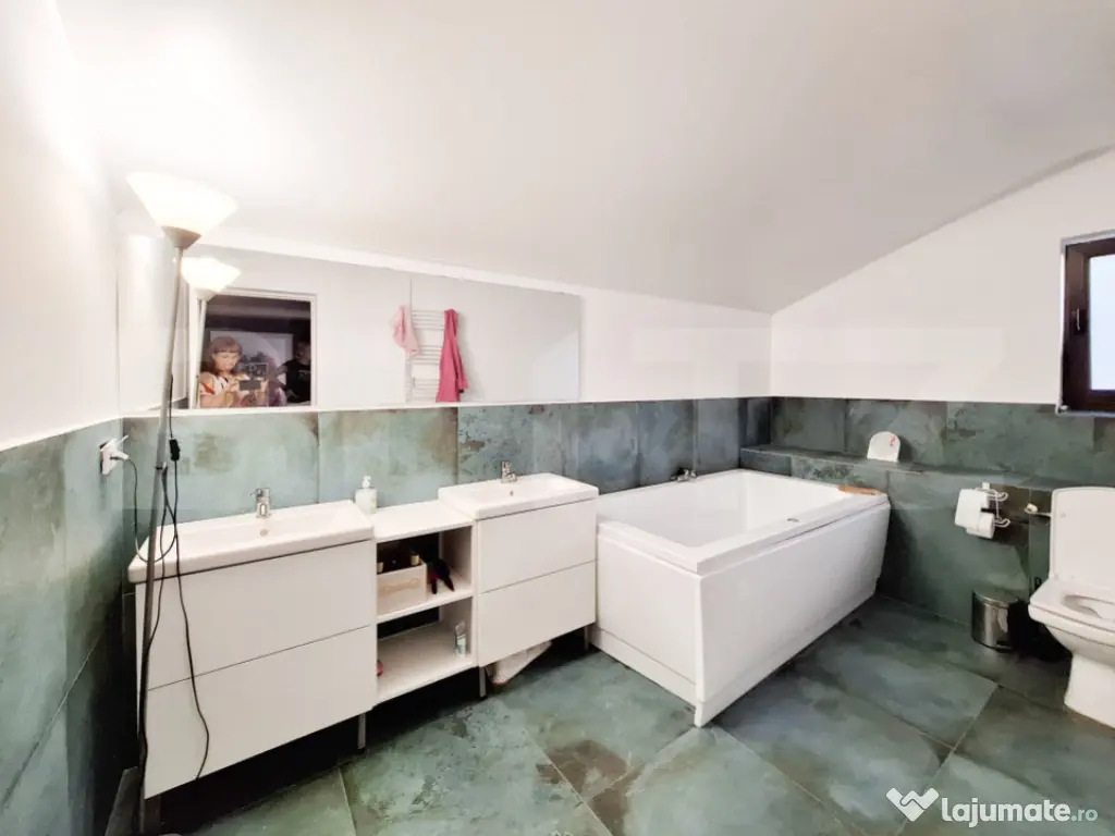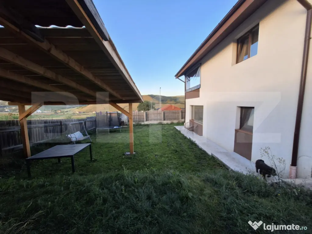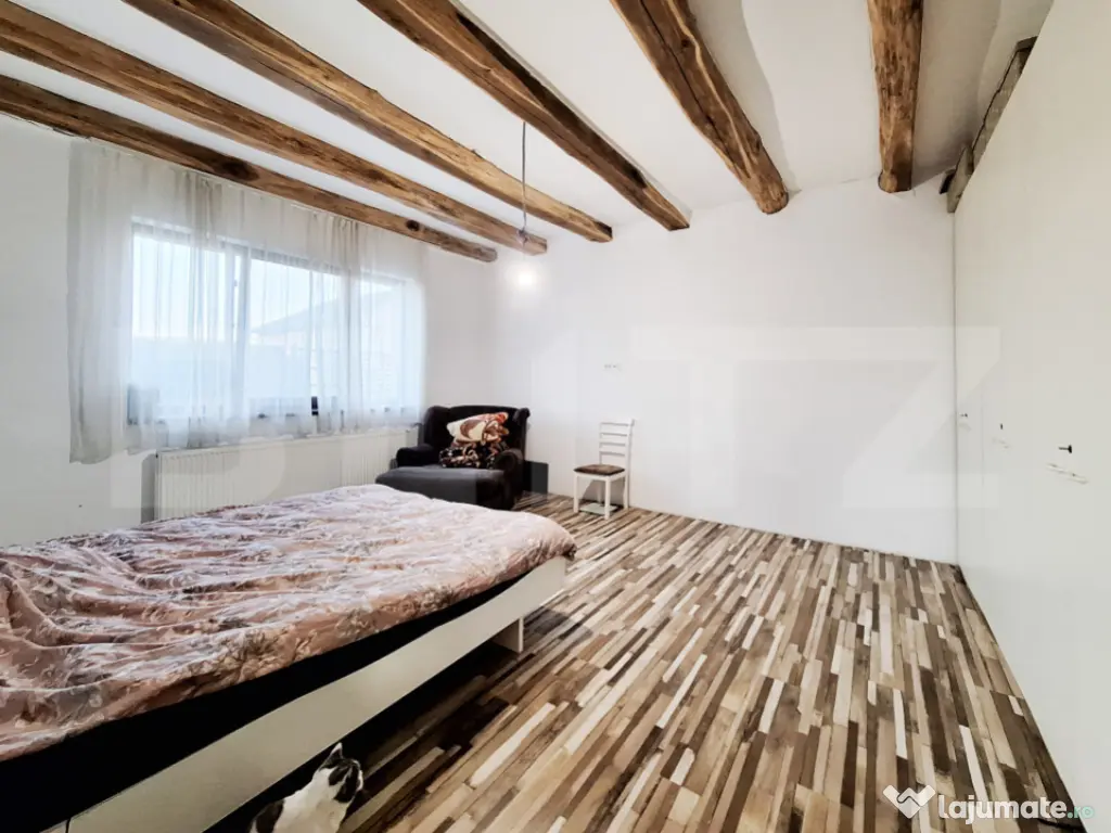 Blitz propune o proprietate la marginea naturii, acolo unde liniștea devine parte din viața ta de zi cu zi, o casă cochetă, amplasată într-un cartier nou de case din Chinteni, pe un teren generos de 550 mp. Construită solid, din cărămidă și cu fundație din beton armat, casa are o suprafață utilă de 220 mp și oferă o compartimentare ideală pentru confortul întregii familii: - Parterul te întâmpină cu un living generos, cu bucătărie deschisă, perfect pentru serile în familie, un dormitor intim, o baie modernă și un spațiu de depozitare practic. - Etajul găzduiește două dormitoare luminoase, un mic birou pentru momentele de concentrare și o terasă spectaculoasă, unde poți admira apusul în fiecare seară. Casa este complet mobilată și utilată, pregătită să te primească așa cum meriți. Beneficiezi de toate utilitățile: gaz, curent, apă, canalizare, internet și tâmplărie PVC cu geamuri tripan, pentru eficiență și confort termic. Pentru mai multe detalii va rog sa ne contactati. Cod ofertă / ID BLITZ: P152044 Id intern: P152044 Număr Băi: 2 Nr. locuri parcare: 2 Curent Apă Canalizare Gaz