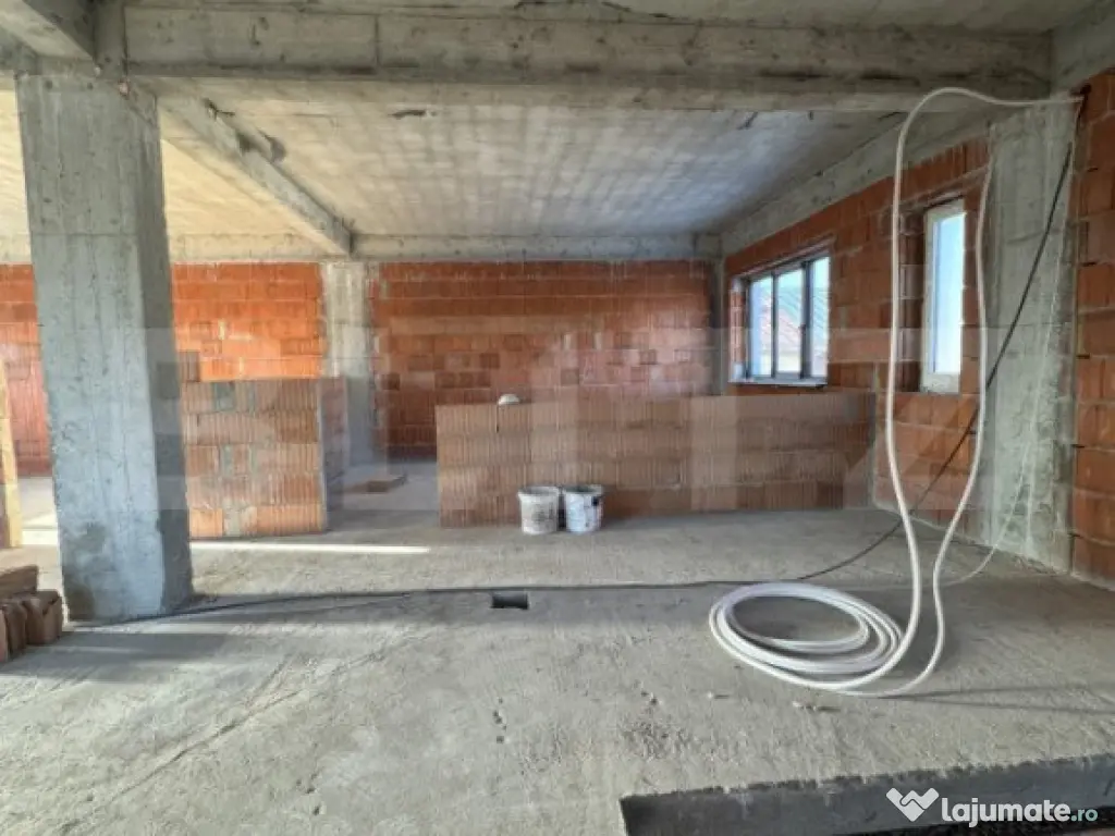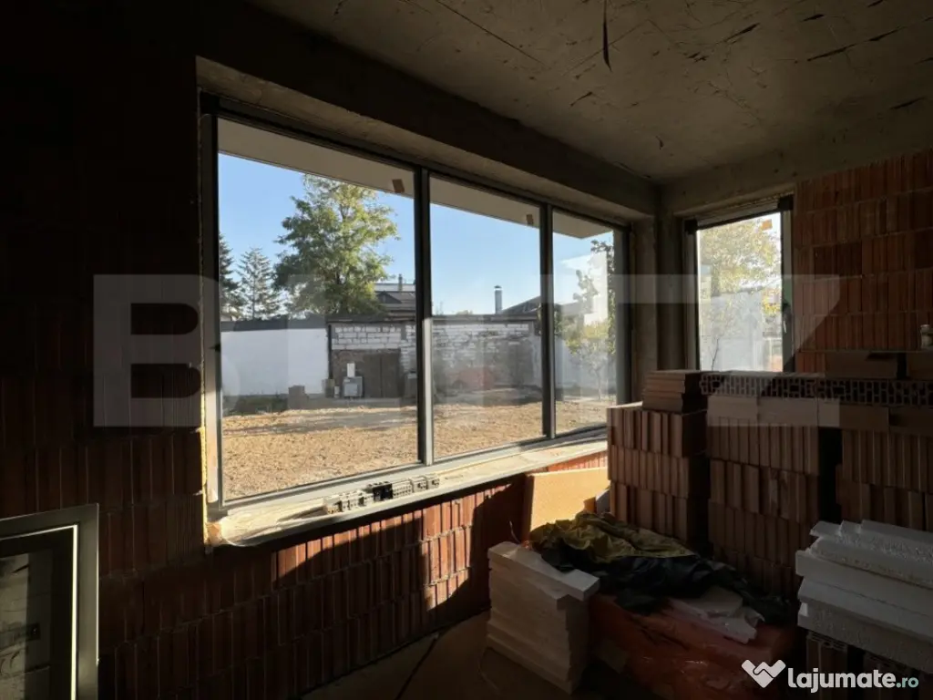 Blitz vă propune spre achiziție o casă nouă cu predare la cheie, cu regim de înălțime P+1 și care isi cauta primul proprietar. Acesta va avea sansa sa o personalizate la interior in ceea ce privește finisajele, dar și compartimentarea. În structura inițială a fost gândită cu hol, living, bucătărie, birou, baie, la parter, iar la etaj: hol, 3 dormitoare, 2 băi, 1 balcon, dressing și grup sanitar cu scop de spălătorie. Pe lângă aceasta, regăsim ca spații adiționale: garaj interior pentru 2 mașini, terasă acoperită și închisă. Edificata din cărămidă porotherm cu izolație exterioară din vată bazaltică, placa de beton turnată, atât între parter si etaj, dar și peste etaj, termopane VeKa, vârf de gamă Qfort, ușă metalică intrare, a fost construită fără a face rabat la calitate. Partea de finisaje interioare este inclusa in preț și va fi realizată după dorința noului proprietar. Curtea cu adevărat generoasă, însumând 1355 mp teren, se va preda amenajată cu gazon, pavată, cu gard de BCA și porți metalice asistate electric. Dimensiunea terenului permite construcții adiționale, iar proprietarului este deschis să împlinească toate dorințele cumpărătorului. Pentru a descoperi o casă de vis, va așteptăm cu drag la vizionare! Cod ofertă / ID BLITZ: P135008 Id intern: P135008 Număr niveluri imobil: 1 Număr Băi: 3 Curent Apă Canalizare Gaz