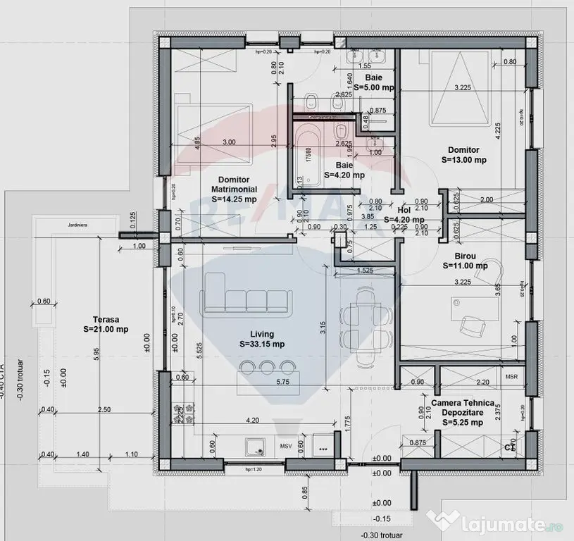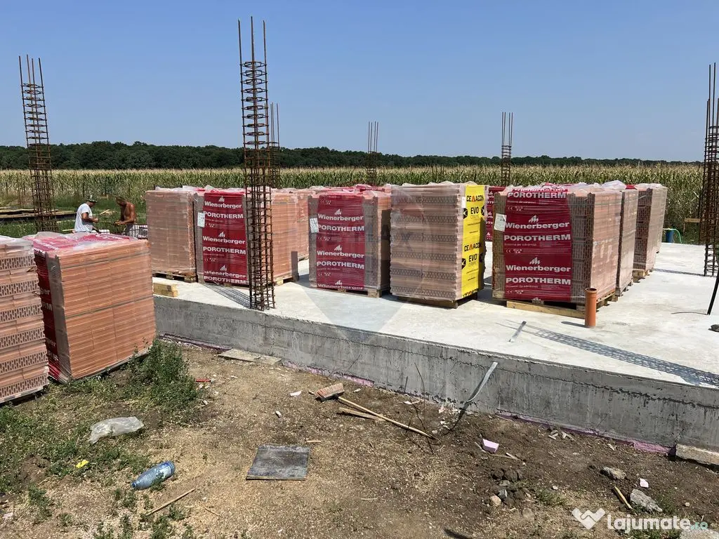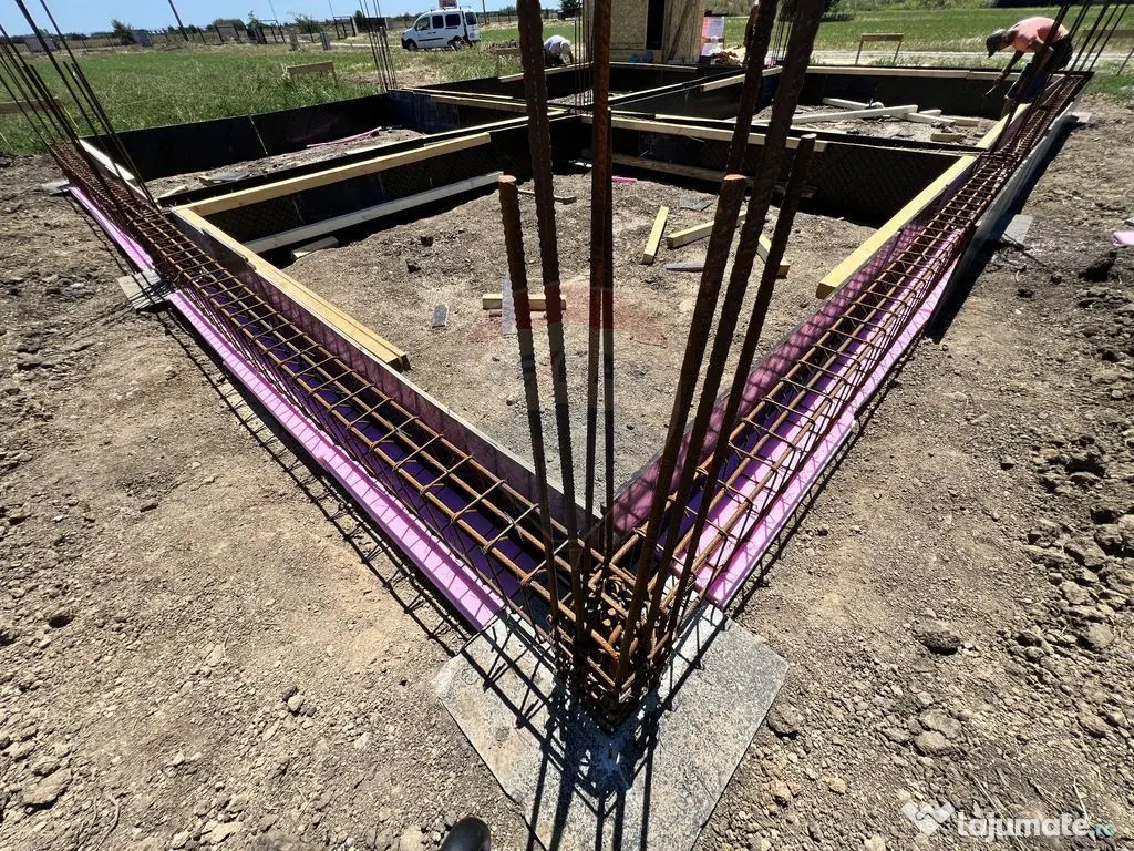 De vanzare casa la rosu cu teren de 625 mp si proiect pentru o casa Eficienta Termic nZEB (Near Zero Energy Building) in proiectul rezidential Irish Green care se aflată pe Sos. Ștefănești, între Ștefăneștii de Jos și Dascălu, aproape de Autostrada A0 centura București și la doar câțiva pași de pădurea Runcu. Teren în suprafață de 625 mp (25x25) plus 100 mp părți comune din complexul rezidențial. Suprafața construită 118 mp | Suprafata utila 95 mp + terasa. Proiect nZEB - 4 camere cu 2 bai construit doar pe Parter. Se prada si proiectul de arhitectura, stuctura, instalatii electrice si sanitare, studiu geotehnic. Fundatie din beton armat si izolata termic 10 cm polistiren extrudat exectutata confimr proiect cu ploturi 1,5mx1,5m cu beton + cuzineti hidroizolati + grinda fundatie (izolata termic) + placa de la cota 0 (izolata termic). Pereti exteriori 30 cm caramida Porotherm Robust. Placa peste parter din beton executata. Proiectul este pentru parter dar daca doriti strctura de rezistenta permite si ridicarea unei mansarde. Complex rezidențial cu acces securizat, porți acționate electric. Statie de autobuz la poarta de acces in complex. Alimentare cu energie electrică trifazată prin racordare la rețeaua de energie electrică existentă pe amplasament. Preț 99.000 euro + TVA 21% Comision 0% In pozele din anunt sunt si randari exterioare si interioare ele proiectului. In acest complex mai am de vanzare un teren de 625 mp cu fundatie, cu aceleași caracteristici, la prețul de 55000 + TVA. Cele doua proprietăți sunt alaturate. Număr niveluri imobil: 1 Număr Băi: 2 Posibilitate parcare: Da Nr. locuri parcare: 2 Utilități: Curent