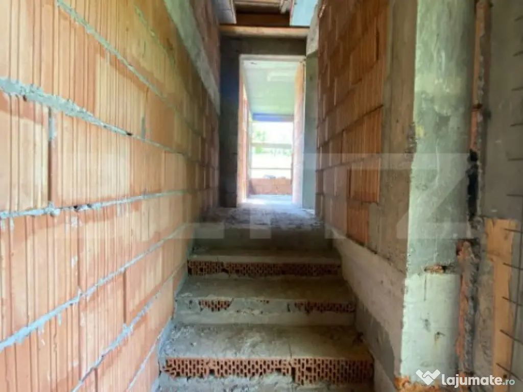 Blitz va prezinta această casă la roșu, solid construită, cu placă de beton și acoperiș finalizat, perfectă pentru a fi transformată în locuința visurilor tale! Situată într-o zonă liniștită, departe de agitația urbană, dar cu acces facil la toate utilitățile – apă, canalizare, gaz și curent, disponibile chiar în fața casei. Cu o suprafață utilă de 74 mp și un teren generos de 800 mp, această proprietate oferă spațiu suficient pentru confort și relaxare. Compartimentarea este ideală pentru o familie sau pentru cei care își doresc un refugiu modern și funcțional: ✅ 2 dormitoare spațioase, perfecte pentru odihnă și relaxare ✅ Living generos, ideal pentru momente de socializare ✅ Bucătărie luminoasă, cu acces facil către zona de dining ✅ 2 băi, pentru confortul întregii familii ✅ Terasă unde te poți bucura de aer curat și liniște ✅ Beci, perfect pentru depozitare sau amenajare ca cramă Mai mult, casa oferă posibilitatea de mansardare, ceea ce îți permite să extinzi spațiul locuibil și să personalizezi fiecare detaliu după propriile dorințe. Dacă îți dorești o locuință într-un cadru natural, cu teren generos, utilități la stradă și potențial enorm de amenajare, această casă este alegerea perfectă! Cod ofertă / ID BLITZ: P145275 Id intern: P145275 Număr Băi: 2 Curent Apă Canalizare Gaz