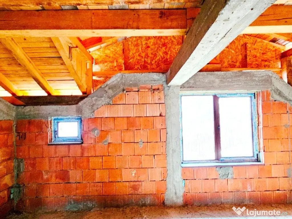 Casa este prevăzută cu termopaneși ferestre Velux.