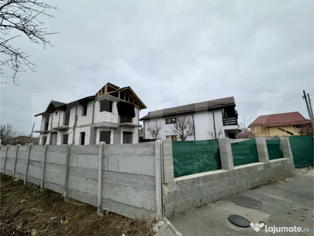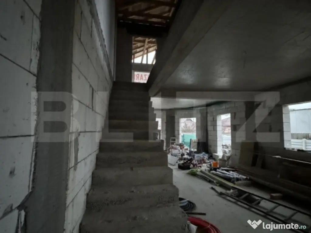 Blitz va propune spre achizitie un teren in suprafata de 356 mp, pe dreptunghi cu deschidere la 2 strazi, dintre care 1 principala. Pe teren se afla o casa la stadiul de rosu si se preda asa cum se vede, cu autorizatie de constructie valabila inca 1 an, insa cu posibilitate de prelungire. Strada pe care se afla casa este asfaltata, iar in jurul ei nu exista constructii mai inalte. Constructia este edificata din beton B250, cu BCA si are acoperis cu garantie. Suprafata casei este una generoasa avand 145 mp utili cu: living, baie, bucatarie si camara, la parter, iar la etaj: hol, 3 dormitoare, 2 bai si 3 balcoane. Va asteptam la vizionare! Cod ofertă / ID BLITZ: P140527 Id intern: P140527 Număr Băi: 3 Curent Apă Canalizare Gaz