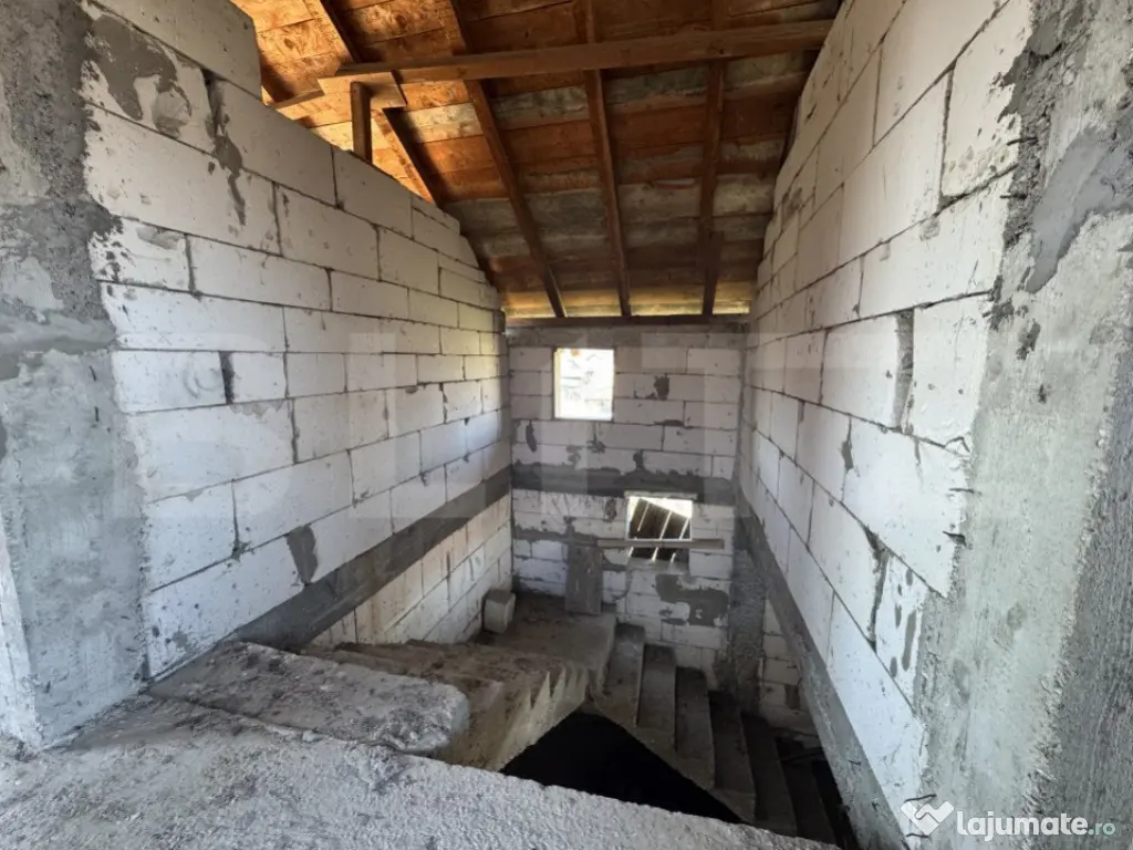 Blitz va propune spre achizitie in exclusivitate casa la stadiul de rosu in Cernele, zona pensiune Luciana/ Profi/ capatul autobuzului 2. Casa are un teren de 420 mp si un front stradal de 12,28 ml, cu un teren dreptunghiular cu deschidere la strada publica. Casa este conceputa in regim P+M, din BCA, cu placa turnata intre parter si mansarda si cu acoperis de tigla. Se vinde exact asa cum se vede, nu exista posibilitate de predare la alt stadiu. Este situata intre case, iar ca utilitati: curent si apa de la retea. Construtia este realizata cu autorizatie de constructie si este intabulata in cartea funciara. Se accepta schimb cu apartament. Va asteptam cu drag la vizionare! Cod ofertă / ID BLITZ: P142541 Id intern: P142541 Număr Băi: 2 Curent Apă