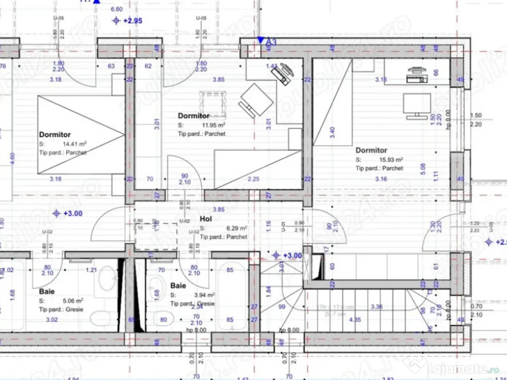 Blitz vă propune spre vânzare o casă individuală situată într-un ansamblu rezidențial privat din Tăuți, la câteva minute de Cluj-Napoca. Proprietatea se află într-o zonă liniștită și verde, cu acces facil și priveliști superbe asupra văii. Suprafață utilă: 120 mp Compartimentare: -Parter: living foarte generos open-space cu bucătăria (cu posibilitate de separare), baie cu duș, spațiu tehnic sub scară și hol de acces; din living se face accesul către terasă și grădină -Etaj: 2 dormitoare deservite de o baie comună + un dormitor matrimonial cu baie proprie și balcon -Teren: 300 mp, cu zonă verde, spațiu pentru arbori, terasă și loc de parcare inclus Construcție și dotări: -Toate utilitățile disponibile: gaz, curent, apă, canalizare -Încălzire în pardoseală -Izolație exterioară Austrotherm 15 cm (densitate 100) -Hidroizolație la fundație și bazin de retenție pentru apele pluviale -Tâmplărie Salamander tripan (3 foi sticlă) -Acoperiș Bilka -Fațadă placată cu cărămidă aparentă -Predare la stadiu semifinisat, cu exterior complet finalizat -Curtea se predă amenajată, cu gazon însămânțat Avantaje zonă: -Drum privat de 7 m lățime, ce deservește doar ansamblul -Stație de autobuz la câteva sute de metri -Grădiniță modernizată în apropiere -Magazin alimentar la 2 case distanță -Drum principal în curs de modernizare și asfaltare cu trotuare -Acces rapid către Cluj-Napoca – 5-10 minute pe multiple rute (Florești, Grigorescu, Polus-Răzoare) -Proximitate față de pădure, trasee de drumeție, Vivo Mall, parcul Poligon, obiective turistice și culturale Această proprietate reprezintă alegerea ideală pentru o familie care caută liniște, intimitate și confort, dar și pentru investiție, într-o zonă în plină dezvoltare. Preț competitiv. Vă invităm la o vizionare pentru a descoperi toate avantajele acestei locuințe! Cod ofertă / ID BLITZ: P152711 Id intern: P152711 Număr niveluri imobil: 1 Număr Băi: 3 Curent Apă Canalizare Gaz