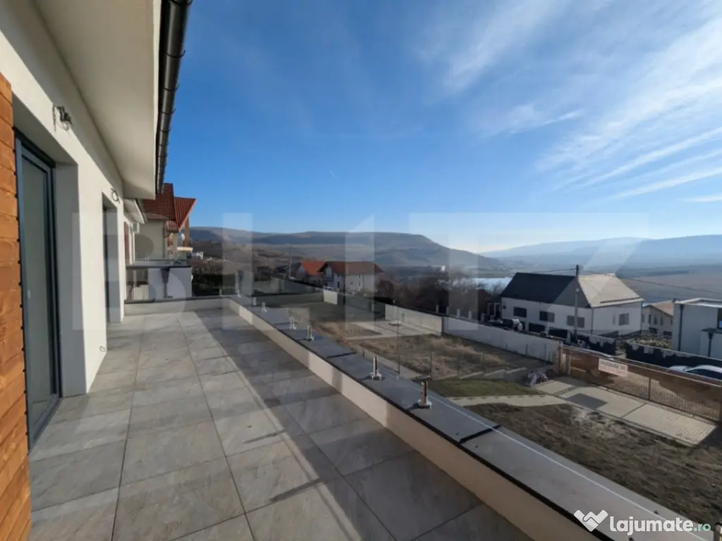 Blitz oferă spre vânzare o casă nouă, cu arhitectură modernă, amplasată într-o zonă liniștită, cu panoramă deschisă spre lac și expunere sudică, ideală pentru cei care caută lumină naturală, intimitate și eficiență energetică. Detalii proprietate: Suprafață teren: 772 mp Suprafață construită la sol: 136,5 mp Suprafață construită desfășurată: 261 mp Suprafață utilă: 150 mp Acces din două străzi, cu două fronturi și porți glisante 4 locuri de parcare pavate (câte 2 pe fiecare acces) Compartimentare: Parter: living generos și foarte luminos, baie, bucătărie open space, perete vitrat cu deschidere către terasă acoperită de 29 mp Etaj: 3 dormitoare, 2 băi, balcon panoramic de 24 mp cu balustrade din sticlă Dotări și caracteristici tehnice: Utilități: apă, curent, gaz, fosa septica Predare la stadiu semifinisat avansat Pereți interiori finisați cu lavabil Încălzire în pardoseală, centrală termică + puffer, puse în funcțiune Tâmplărie REHAU 7 camere, culoare gri antracit, cu suprafețe vitrate generoase Zidărie din cărămidă Porotherm 30 cm Izolație exterioară cu polistiren de 15 cm Acoperiș cu țiglă ceramică gri antracit Terasele (parter, etaj și acces) finisate cu gresie Gard realizat pe fundație solidă Exterior complet amenajat, zonă verde cu gazon însămânțat Avantaje cheie: Vedere panoramică spectaculoasă spre lac Expunere sudică – casă extrem de luminoasă Două fronturi stradale și acces dublu Eficiență energetică ridicată Zonă retrasă și liniștită Pentru mai multe detalii sau pentru programarea unei vizionări, vă invităm să ne contactați. Cod ofertă / ID BLITZ: P160508 Id intern: P160508 Număr niveluri imobil: 1 Număr Băi: 3 Nr. locuri parcare: 4 Curent Apă Gaz