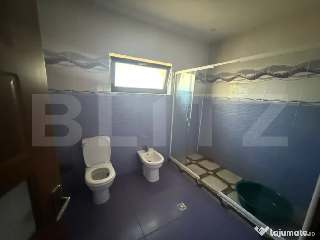 Proprietate tip P+E+M, cu o suprafață utilă de 519 mp, disponibilă spre închiriere. Potrivită pentru firmă, birouri, clinica privată, grădiniță, after-school, pensiune sau locuință pentru familie numeroasă. Imobilul dispune de 7 dormitoare, 3 băi, 2 livinguri spațioase și bucătării cu posibilitate de amenajare. Se închiriază nemobilat, oferind libertatea de organizare și compartimentare în funcție de nevoile chiriașului. Curtea, în suprafață de aproximativ 1000 mp, este complet pavată, oferind spațiu amplu pentru parcare, zonă verde, terasă sau activități recreative. Proprietatea beneficiază de toate utilitățile: apă, gaz, curent, canalizare și internet. Construcția este solidă, bine compartimentată, cu spații luminoase, aerisite și versatile, potrivite pentru diverse destinații comerciale sau rezidențiale. Disponibilă imediat pentru închiriere. Pentru detalii suplimentare și programarea unei vizionări, vă rugăm să ne contactați. Cod ofertă / ID BLITZ: P156953 Id intern: P156953 Număr niveluri imobil: 2 Număr Băi: 5 Curent Apă Canalizare Gaz