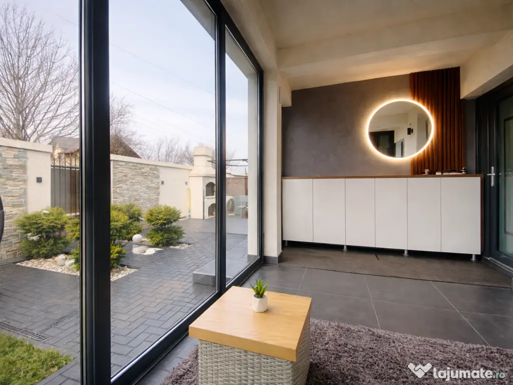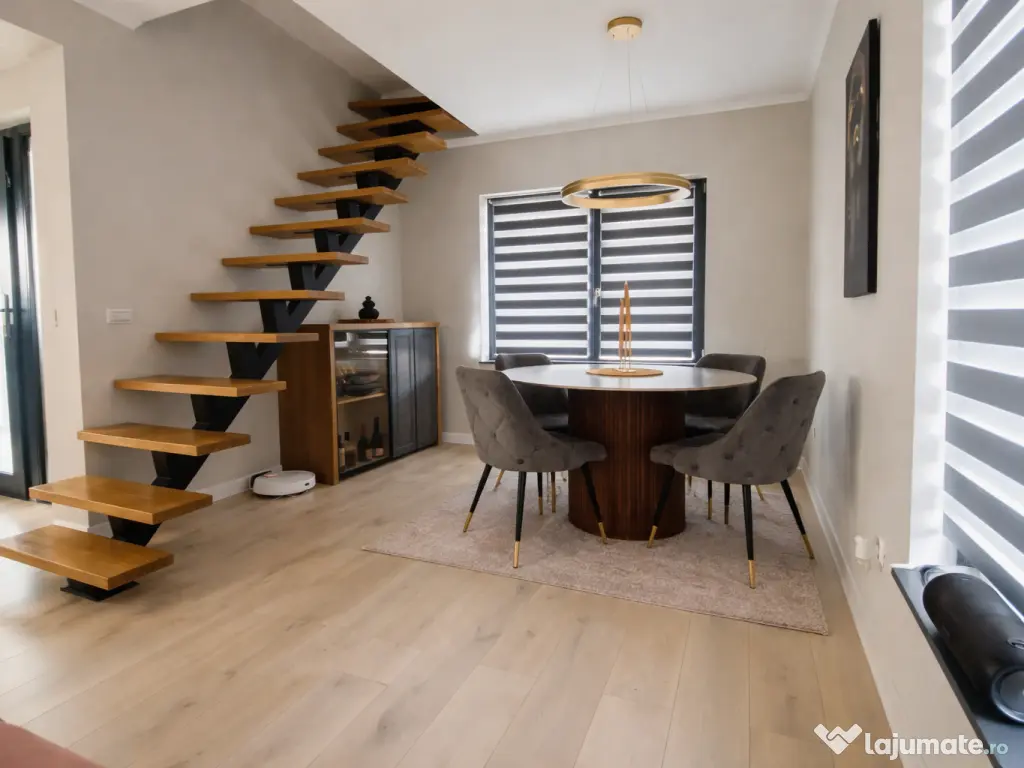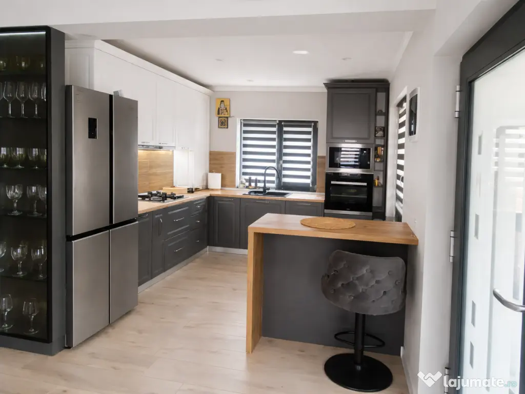 Această casă are 3 camere și o suprafață de 90 mp utili. Se vinde complet mobilată și utilată, cu tot ce se vede in poze. Finisajele sunt de f buna calitate, iar lumina naturală pătrunde în fiecare colț al locuinței.
