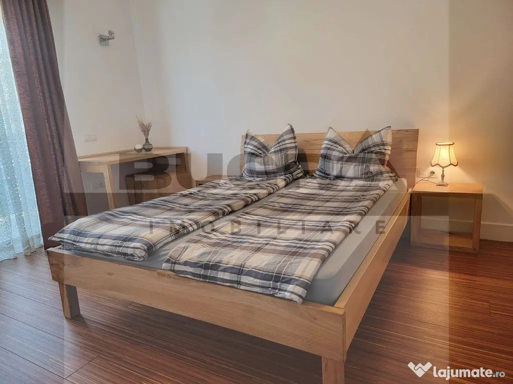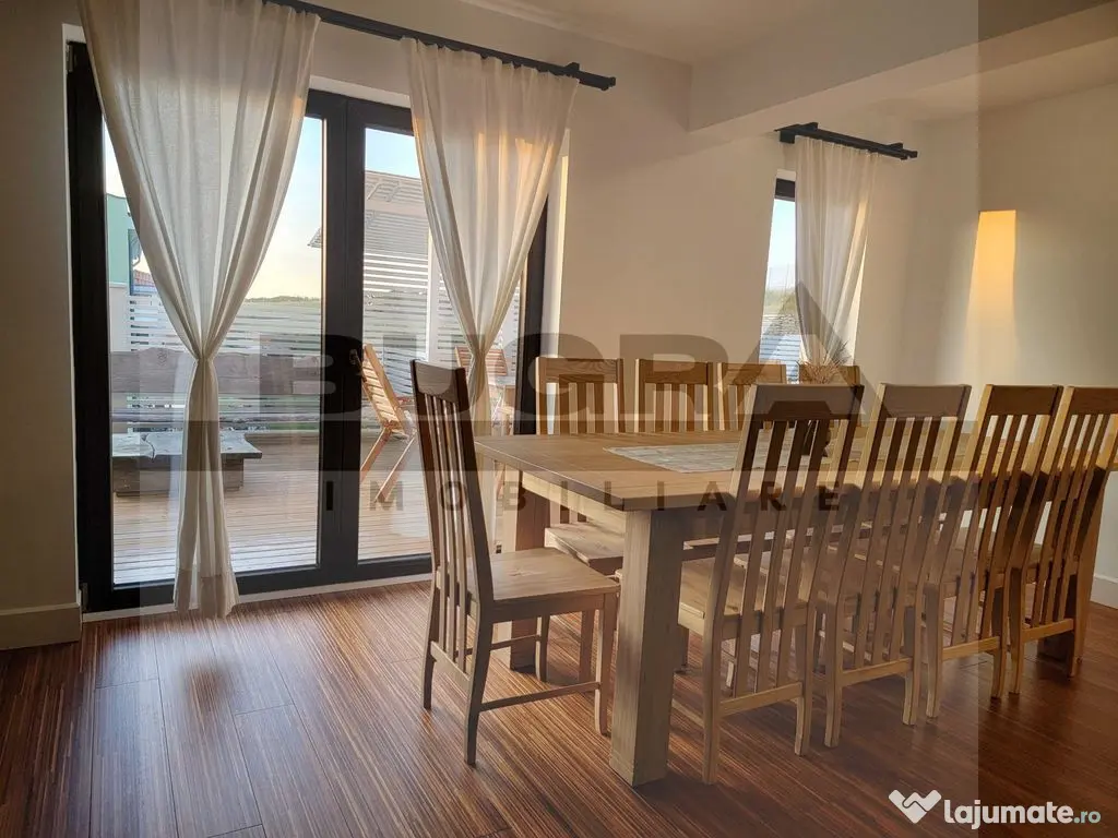 Bugra Imobiliare vă propune spre vânzare o casă elegantă, situată în cartierul Borhanci, Cluj-Napoca – o locuință modernă, construită cu atenție la detalii și finisaje de înaltă calitate. Proprietatea impresionează prin designul său bine gândit, unde confortul și durabilitatea se îmbină armonios: Finisaje premium: mobilier și elemente din lemn masiv realizate la comandă, scări placate cu lemn natural, parchet de trafic intens (lipit, nu flotant). Eficiență energetică și confort: încălzire în pardoseală alimentată de pompă de căldură de ultimă generație, acoperiș din tablă rezistentă, izolație exterioară de 20 cm, tâmplărie cu geam tripan (3 sticle, 7 camere) pentru izolare termică și fonică excelentă. Spații exterioare deosebite: curte amenajată, terasă generoasă de 45 mp, ideală pentru relaxare, gard executat impecabil și o livadă de pomi fructiferi care aduce un plus de naturalețe. Compartimentare Parter: hol spațios, baie mare, living luminos cu bucătărie complet mobilată și utilată, plus o cameră ce poate fi dormitor sau birou. Etaj: trei dormitoare, o baie, fiecare dormitor având acces pe balcon propriu. Demisol (45 mp): cameră tehnică și spațiu de depozitare bine organizat. Alte beneficii: Casa este disponibilă imediat, fiind pregătită pentru mutare fără nicio investiție suplimentară. Această proprietate reprezintă alegerea ideală pentru cei care caută o locuință spațioasă, bine construită și poziționată într-o zonă liniștită a orașului, dar cu acces facil către punctele de interes din Cluj-Napoca. Număr niveluri imobil: 1 Număr Băi: 2 Posibilitate parcare: Da Nr. locuri parcare: 4 Curent Apă Încălzire Demisol