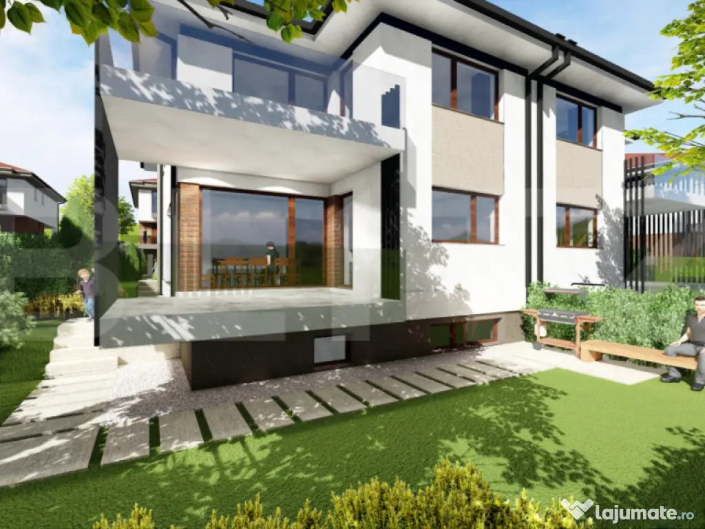 Blitz propune spre vânzare o casă individuală cu arhitectură modernă, parte dintr-un ansamblu rezidențial nou și exclusivist, care va include grădiniță, supermarket, spații comerciale și parc privat, oferind confortul unui cartier complet. Proprietatea are 192 mp utili și un teren de 300 mp, fiind proiectată pentru eficiență și funcționalitate. Compartimentare: Subsol: 3 încăperi versatile (birou, cameră hobby sau dormitor suplimentar) Parter: garaj, living cu bucătărie open-space și dining, baie, terasă acoperită Etaj: 3 dormitoare, 3 băi, 2 dressinguri, 2 balcoane Detalii tehnice: Cărămidă eficientă, polistiren 15 cm, acoperiș țiglă beton cu vată bazaltică 30 cm Tâmplărie Salamander BlueEvolution 92 mm, sticlă tripan 56 mm Încălzire în pardoseală, centrală Buderus, panouri fotovoltaice 3.5 kW Climatizare pe fiecare nivel Predare: semifinisat avansat cu gard, pavaje și grădină amenajată Finalizare: decembrie 2026 | CF: iunie 2027 Avans flexibil: 40% în 3 tranșe până la intabulare LA PRETUL AFISAT SE ADAUGA TVA Cod ofertă / ID BLITZ: P155552 Id intern: P155552 Număr niveluri imobil: 1 Număr Băi: 3 Curent Apă Canalizare Gaz