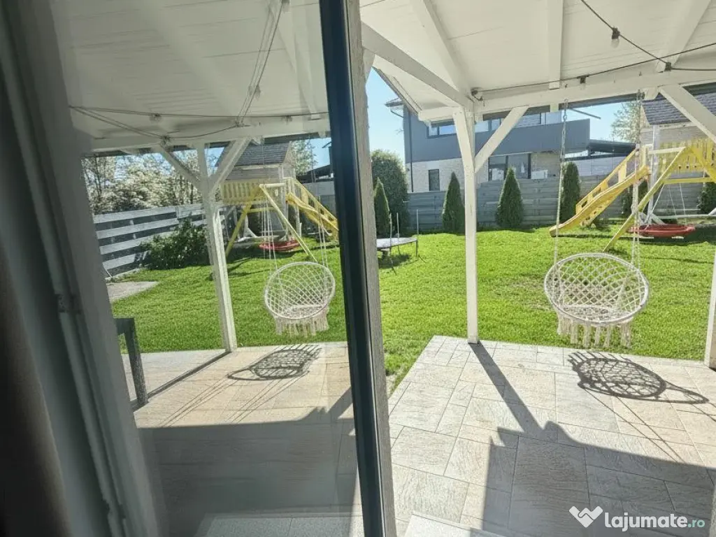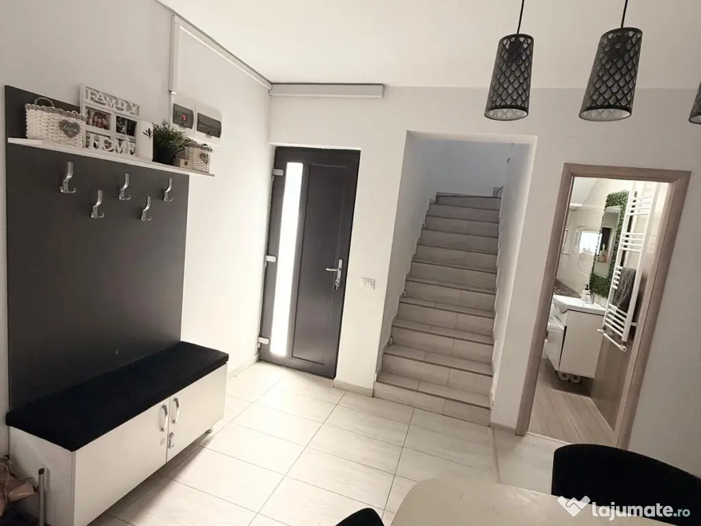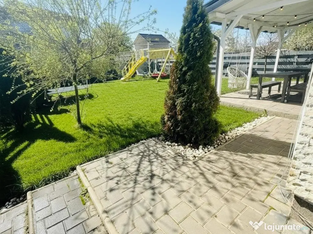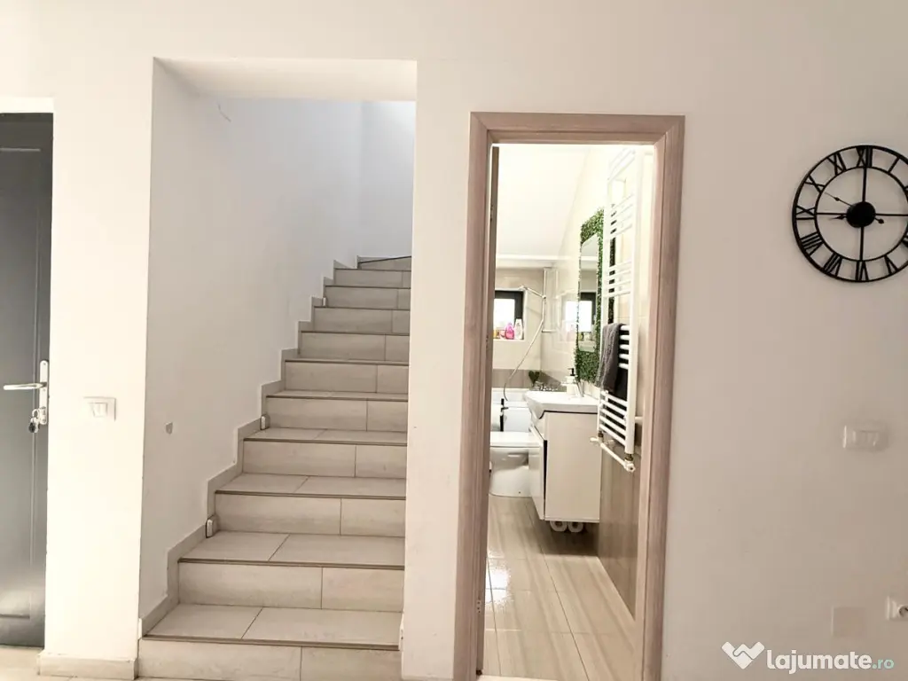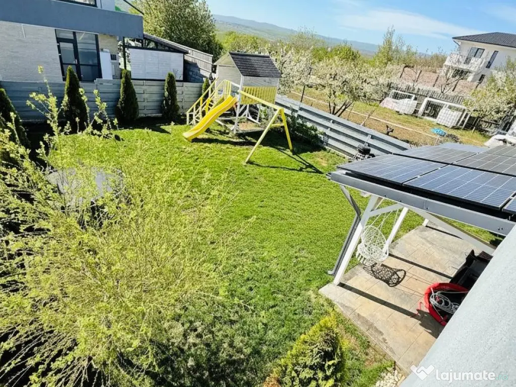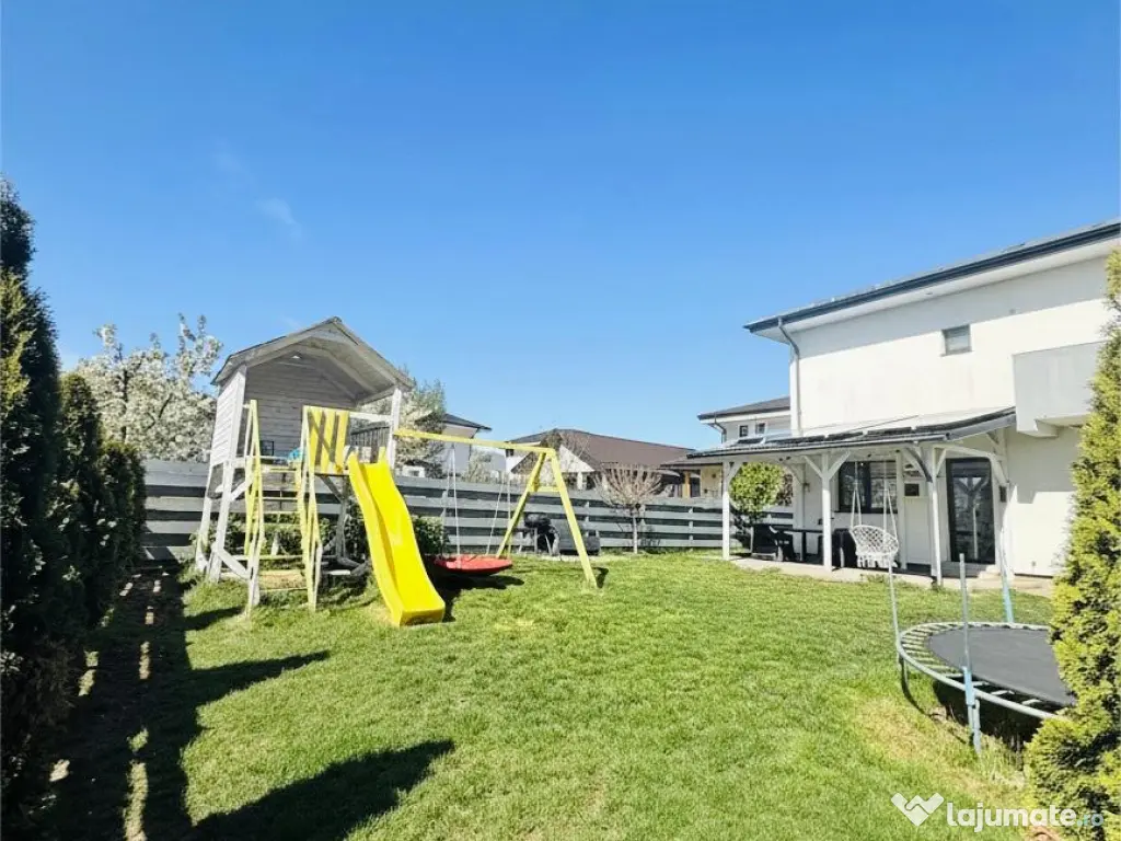 Vă propun spre vânzare o casă modernă, complet mobilată și eficientă energetic, situată excelent în Miroslava, pe strada Stadionului, la doar 800 m de Primărie, într-o zonă liniștită cu acces direct din asfalt.