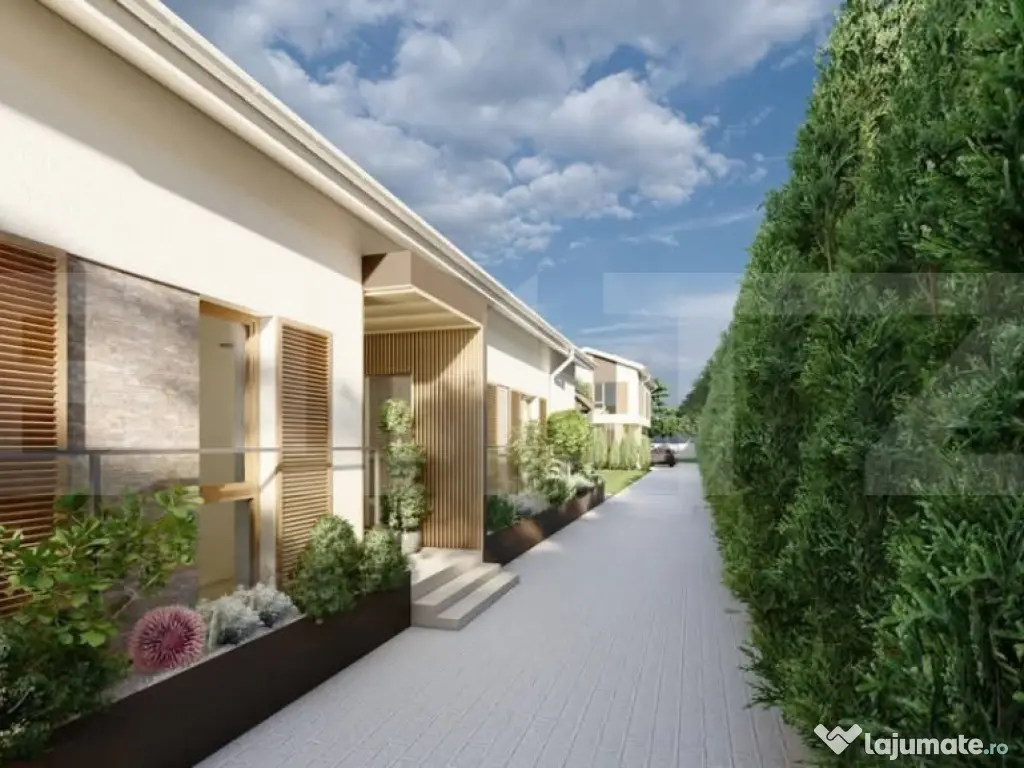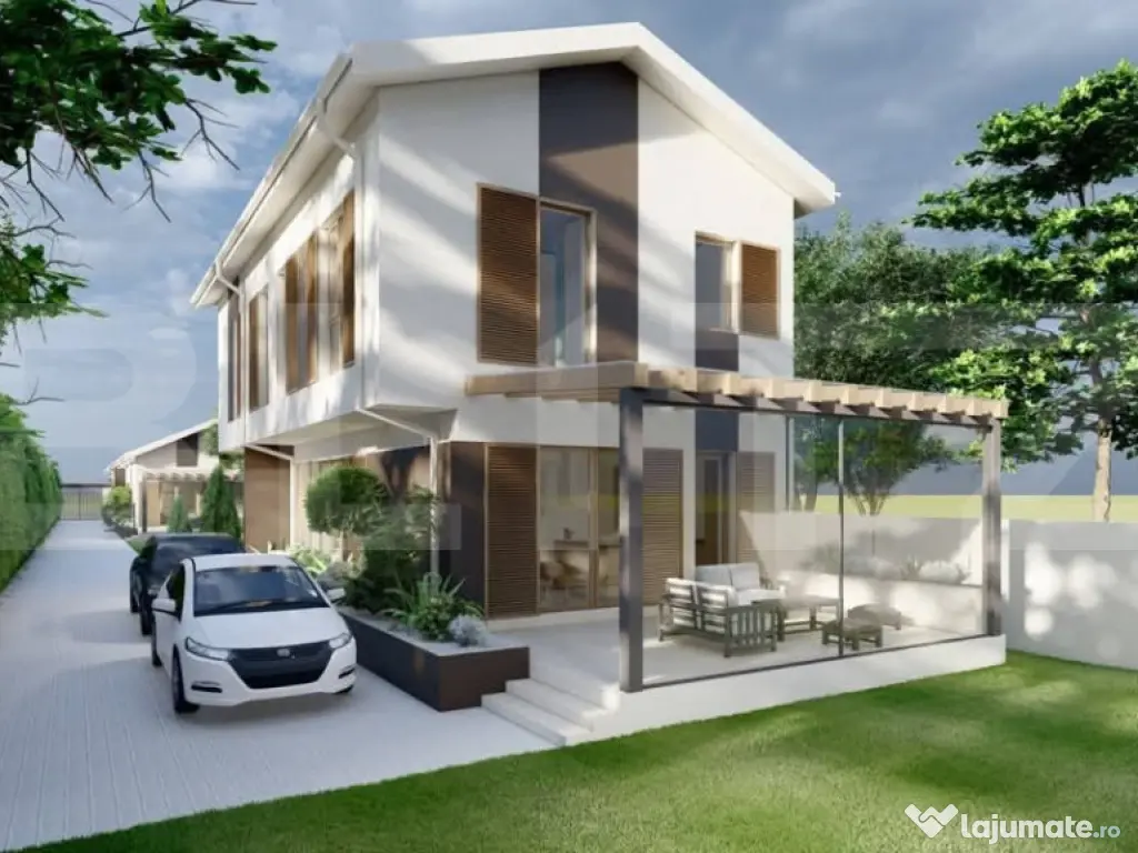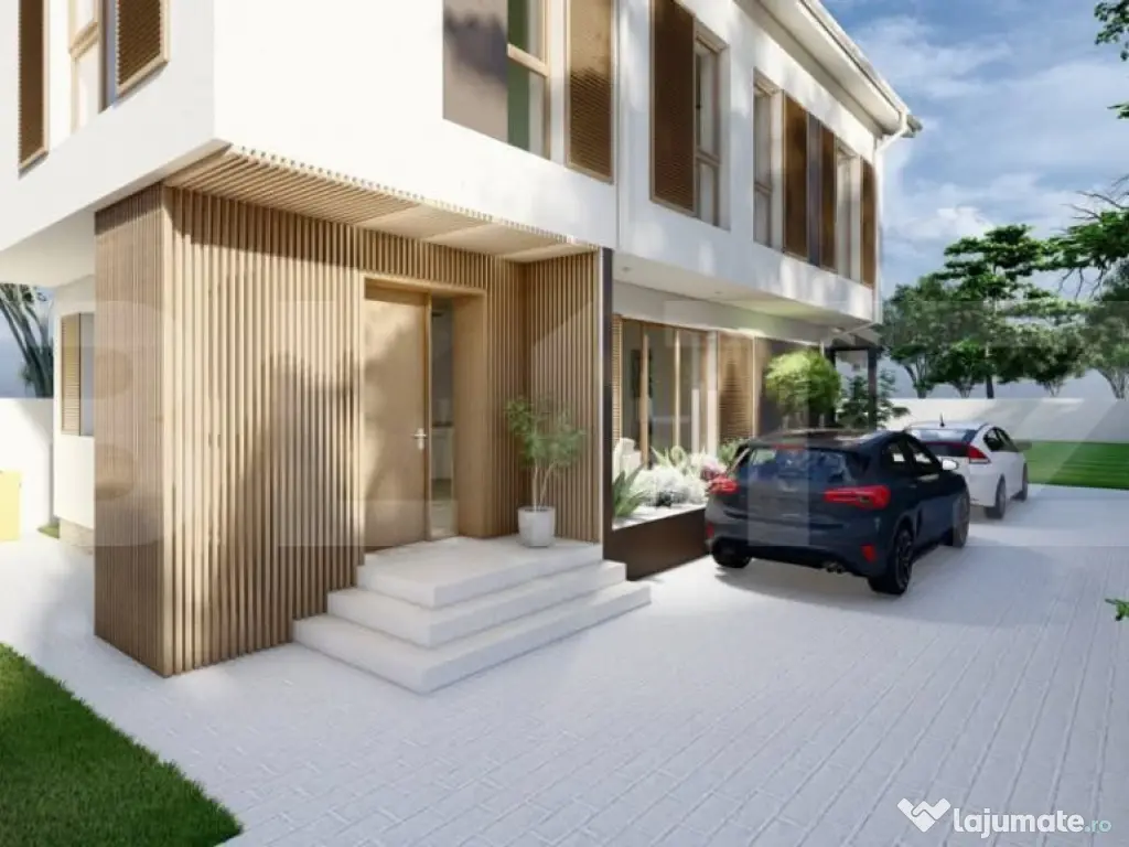 Acest ansamblu rezidențial exclusivist este format din două imobile elegante, proiectate pentru a oferi confort, siguranță și intimitate. O unitate este dispusa pe parter si una pe parter si etaj. Avantaje cheie: • Localizare perfectă – doar 15 minute cu mașina până în Timișoara, într-o zonă departe de agitația orașului, dar aproape de tot ce ai nevoie. • Materiale premium – finisaje de înaltă calitate, design modern și o atenție deosebită la detalii. • Toate utilitățile – drum asfaltat, curent electric, canalizare, gaz metan și internet prin fibră optică. • Spațiu și lumină – case spațioase, cu ferestre mari, terase generoase și grădini perfecte pentru relaxare. • Cadru natural deosebit – aer curat, liniște și intimitate, cu verdeață din belșug și un ambient relaxant. Pretul casei include un design interior profesionist, realizat exact in stilul pe care ti-l doresti. In acest moment casele se afla la stadiul "gri" in interior finisajele le poate alege cumparatorul in functie de preferinte, bugete generoase pentru finisaje, fadata este terminata inclusiv decorativa. Contactează-ne acum pentru mai multe detalii și hai să descoperi locul unde începe viitorul tău Cod ofertă / ID BLITZ: P143341 Id intern: P143341 Număr Băi: 2 Curent Apă Canalizare Gaz