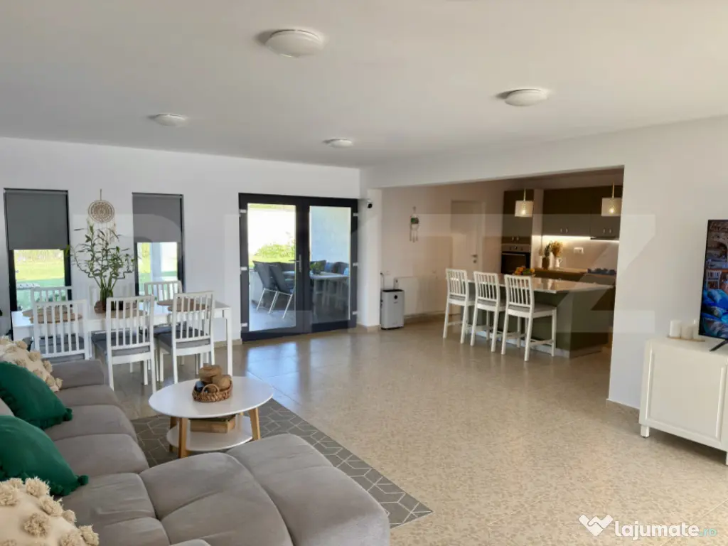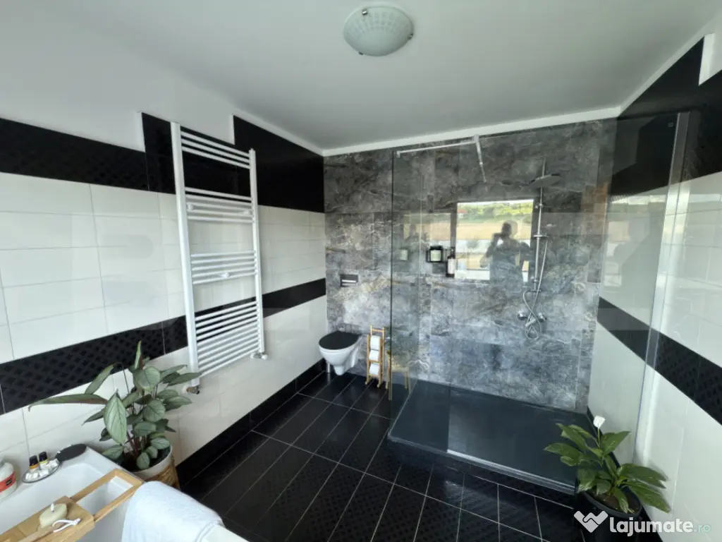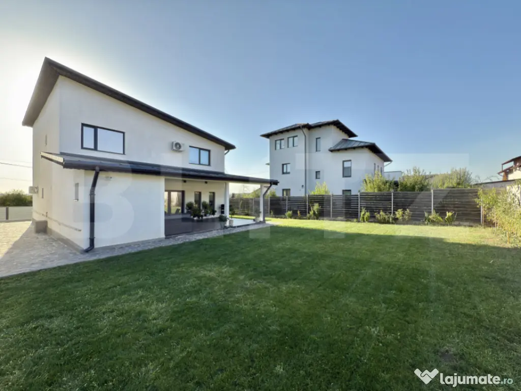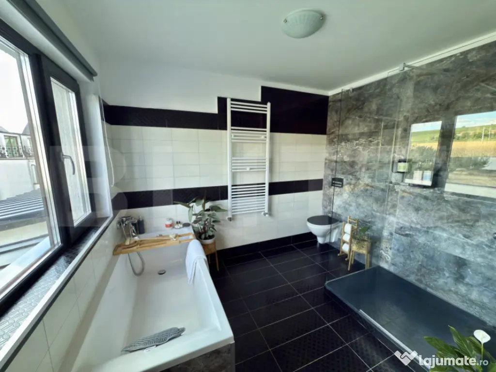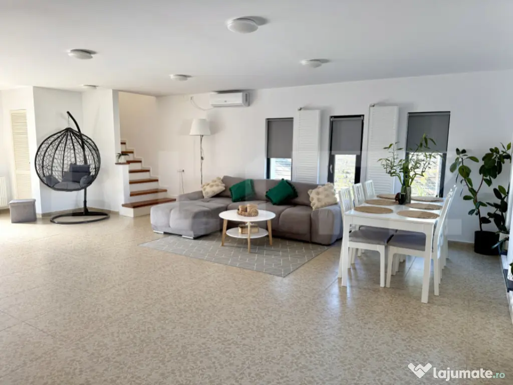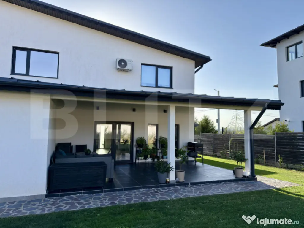 Vă prezentăm o proprietate de tip P+1, o construcție nouă, finalizată în anul 2024, situată în Comuna Bucov, sat Chițorani, pe Strada Iuliu Maniu. Cu o locație excelentă, imobilul se află la doar 3 km de prestigiosul Domeniu Casa Timiș și la 8 km de AFI Ploiești. Casa este intabulată, liberă de sarcini. Detalii despre Proprietate și Teren Suprafață Utilă: 158 mp Terase Acoperite: 44 mp Suprafață Construită: 229 mp (133 mp la sol) Suprafață Teren: 488 mp, cu un front stradal de 16,5 metri Compartimentare: Practică și luminoasă Compartimentare (P+1) Parter: Parterul oferă un spațiu de zi amplu și funcțional: Living generos cu bucătărie open space (57 mp) Acces direct către terasa acoperită (44 mp), ideală pentru relaxare sau servirea mesei în aer liber Dormitor/Birou (12 mp) Cameră tehnică (7 mp) Grup sanitar cu duș (5 mp) Etaj: Etajul este dedicat zonelor de odihnă și include: Suită matrimonială (37 mp) cu baie proprie și dressing Dormitor secundar cu baie proprie (21,5 mp) Hol spațios (14 mp), care poate fi utilizat ca birou sau lounge Terasă acoperită Structură, Izolație și Finisaje de Calitate Proprietatea beneficiază de o structură solidă și de soluții moderne pentru eficiență energetică: Structură: Fundație din beton armat cu hidro și termoizolație, planșeu din beton armat și grinzi stratificate. Pereți framing multistrat. Învelitoare: Șarpantă din lemn cu membrană hidroizolantă și învelitoare din tablă retropanel. Izolație Termică: Izolație termică din EPS 80 de 10 cm, completată cu vată minerală de 20 cm, asigurând o construcție eficientă energetic. Tâmplărie: Ferestre Salamander "4 Season" cu profil PVC de 7 camere și sticlă tripan de 44 mm. Finisaje: Interioare moderne cu parchet laminat și gresie. Obiectele sanitare sunt de la producători de top (Kludi, Geberit). Exterior: Tencuială decorativă siliconică și soclu placat cu piatră. Utilități și Confort Casa dispune de toate utilitățile necesare și de un sistem de climatizare performant: Utilități Complete: Gaze, apă și canalizare, precum și curent electric trifazat. Încălzire: Centrală termică pe gaz în condensare de 35kw și calorifere. Există, de asemenea, posibilitatea de a monta pompă de căldură (curent trifazat). Climatizare: 4 aparate AC inverter WiFi instalate în dormitoare și living. Exterior și Amenajare Curte Curtea este complet amenajată și securizată: Gard: Gard din aluminiu pe fundație de beton. Acces: Poartă auto cu pregătire pentru sistem de automatizare. Carport/Pergolă: Spațiu acoperit pentru mașină. Amenajare: Curte pavată cu piatră de munte, gazon și pomi fructiferi. Echipare și Dotări Incluse Proprietatea se vinde parțial echipată, oferind un avantaj imediat: Bucătărie: Modernă, realizată la comandă, cu insulă și sistem soft-close, complet utilată cu cuptor electric, hotă, mașină de spălat vase și chiuvetă cu tocător. Incluse în Preț: Bucătăria echipată, cele 4 aparate AC, corpuri de iluminat și accesorii decorative (rulouri ferestre, draperii, oglinzi, suporturi dressing, etc.). Opțional: Casa se poate vinde mobilată complet, conform fotografiilor. Pentru mai multe detalii și programarea unei vizionări, vă rugăm să ne contactați. Cod ofertă / ID BLITZ: P155144 Id intern: P155144 Număr niveluri imobil: 1 Număr Băi: 2 Curent Apă Canalizare Gaz Climă