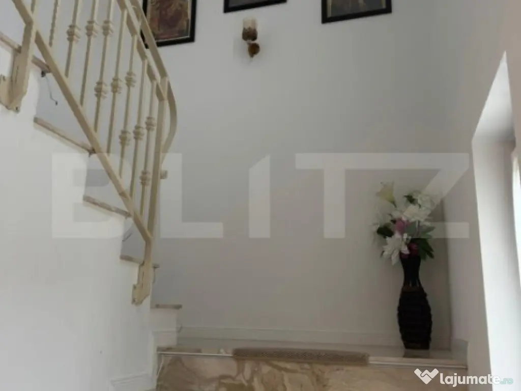 Blitz va propune spre vanzare o casa moderna cu regim de inaltime P+1E+pod, construita in 2004 cu doua randuri de caramida porotherm. Suprafata de teren este de 10 ari (1000 de metri patrati). Casa are 193 mp utili si este complet renovata la interior , totul nou , calitate superioara :tencuieli, termopane 7 camere /3 sticle, usi, exterioare si interioare, instalatii sanitare noi, bai, parchet lemn masiv triplustratificat, granit, instalatii, centrala gaz, calorifere. Mobila este facuta pe comanda noua din lemn masiv si MDF. Supraveghere video, gard de piatra si fier. Este izolata exteior. Dispune de 4 dormitoare, 2 bai, 1 living, 1 bucatarie cu mobila si electrocasnice noi 3 balcoane 1 beci sub casa. Incalzire cu centrala pe gaz dar dispune si de o centrala pe lemne care este aparte de casa. Garaj foarte spatios avand sub el beci zidid de piatra. Foisor mare inconjurat cu vie. Canalizare retea publica. Apa: Fantana proprie. Livada pomi fructiferi. Magazii, padoc pentru caine. Casa se poate preda mobilata sau nemobilata. Pe suprafata terenului liber se mai poate construi inca o casa , suprafata libera de teren fiind o parcela de aproximativ 6 ari. Pentru mai multe detalii nu ezitati sa ne contactati! Cod ofertă / ID BLITZ: P147575 Id intern: P147575 Număr niveluri imobil: 1 Număr Băi: 2 Nr. locuri parcare: 2 Curent Apă Canalizare Gaz