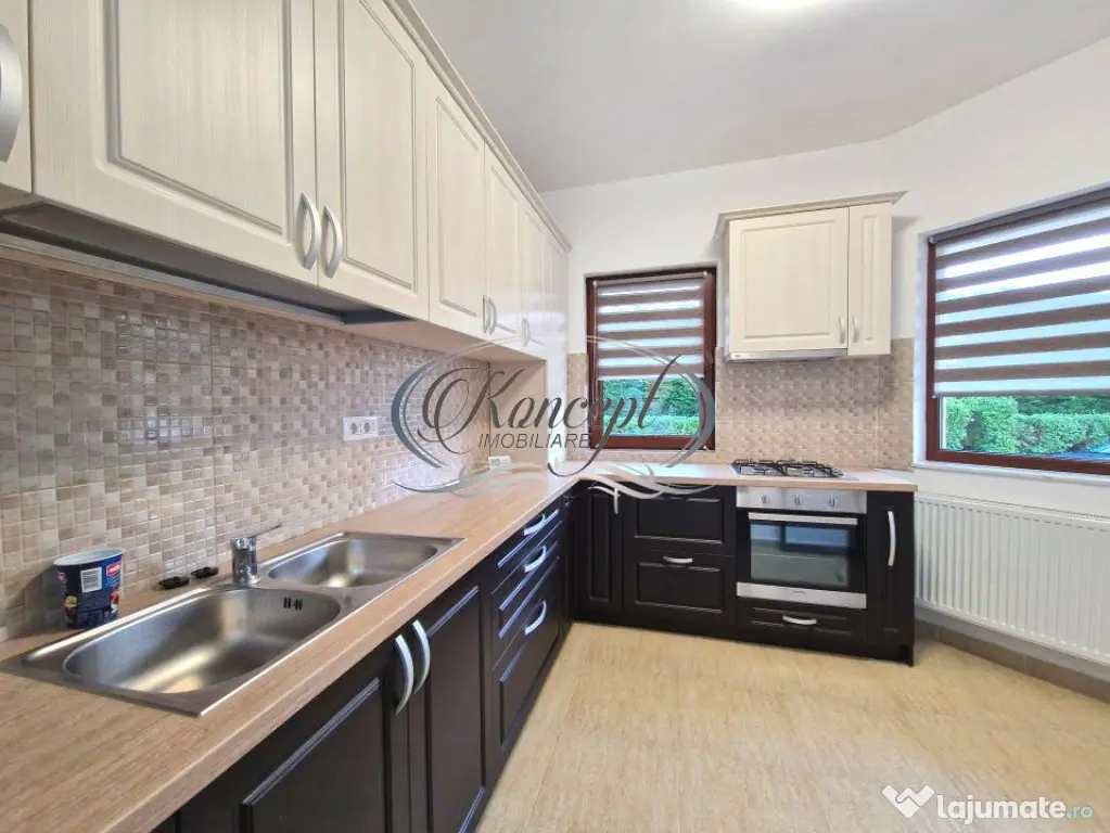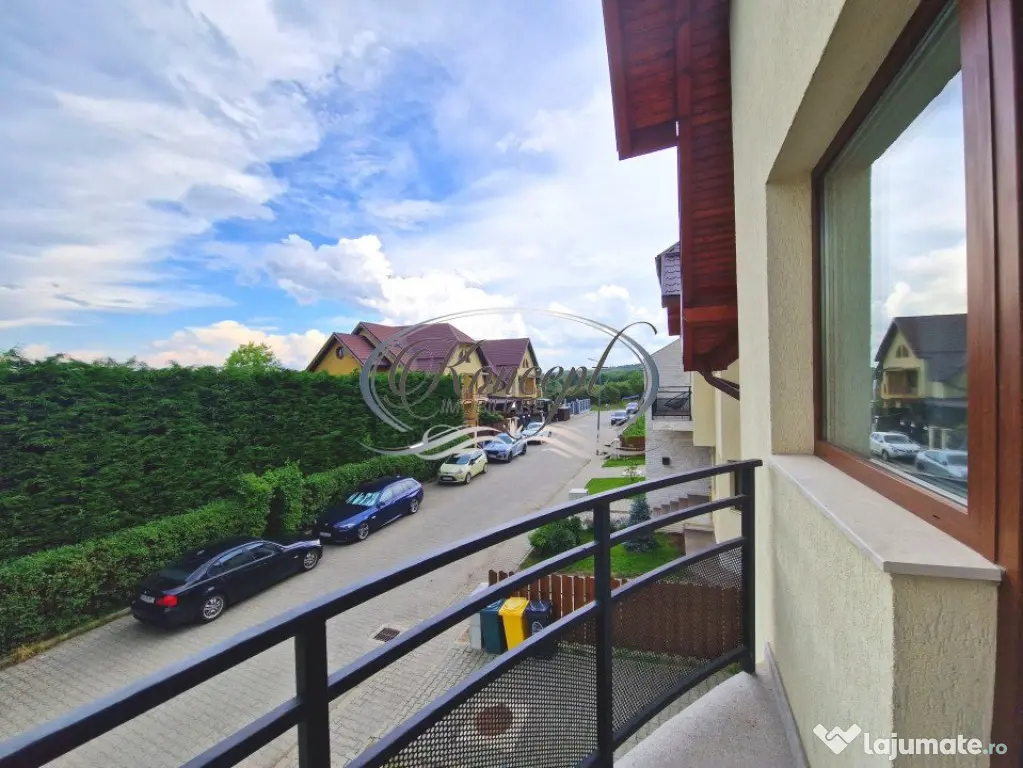 Koncept Imobiliare va ofera spre inchiriere o casa insiruita situata in cartierul Buna Ziua, in apropierea Restaurantului Aroma, intr-un ansamblu privat de case, pe o strada linistita cu circuit inchis si trafic redus. Proprietatea se desfasoara pe un teren de 270 mp, cu o suprafata utila generoasa de aproximativ 220 mp, fiind dispusa pe trei niveluri si oferind spatiu amplu, confort si intimitate. Compartimentarea este practica si bine gandita: la parter se regasesc livingul spatios, bucataria complet mobilata si utilata, o baie si garajul cu acces direct in casa. Etajul 1 este dedicat zonei de noapte si include trei dormitoare, un dressing, o baie si hol de acces, fiecare dormitor beneficiind de balcon propriu. La etajul 2 se afla inca trei camere luminoase si o baie suplimentara, oferind multiple optiuni de utilizare – birou, dormitor pentru oaspeti sau spatiu hobby. Suprafata totala a celor trei balcoane este de aproximativ 10 mp. Casa dispune de finisaje moderne, ferestre tripan cu 3 foi de sticla, incalzire prin calorifere cu centrala termica proprie si se inchiriaza nemobilata, exceptand bucataria echipata complet. Curtea libera, de aproximativ 150 mp, este amenajata cu gazon si pavaj, ideala pentru relaxare sau activitati in aer liber. Exista loc de parcare pentru o masina in garaj si inca doua locuri in curtea imobilului, cu acces direct din strada asfaltata. Pozitionarea intr-o zona exclusiv rezidentiala, linistita si cu spatii verzi in apropiere, face ca aceasta proprietate sa fie alegerea potrivita pentru o familie care isi doreste confort, spatiu si intimitate, dar si acces facil catre principalele puncte de interes din cartierul Buna Ziua. Proprietatea este disponibila imediat. Animalele de companie sunt binevenite. Pentru informatii suplimentare, programarea unei vizionari sau pentru a afla oferta noastra completa va stam la dispozitie telefonic, prin e-mail sau la sediul agentiei noastre, pe str. Aviator Badescu, nr. 19, Cluj-Napoca.