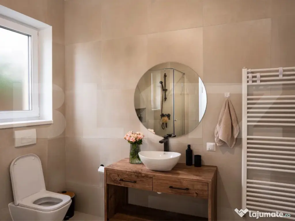 Blitz vă invită să descoperiți o proprietate ce îmbină armonios eleganța arhitecturii contemporane cu confortul unei locuințe gândite pentru viața de familie. Casa se află într-o zonă liniștită, pe o stradă asfaltată și iluminată, oferind o priveliște superbă spre aeroport și acces facil către puncte de interes, școli și transport public. Cu o suprafață utilă de 126 mp și un teren generos de 500 mp, această casă unifamilială cu regim Parter + Etaj este locul unde lumina, spațiul și echilibrul se întâlnesc într-un tot armonios. Curtea amenajată, terasa spațioasă și cele trei locuri de parcare completează perfect tabloul unei proprietăți moderne și funcționale. Eficiență și confort Construită cu atenție la detalii și sustenabilitate, locuința este echipată cu panouri fotovoltaice de ultimă generație (6,8kw), care reduc considerabil costurile lunare de întreținere. Încălzirea în pardoseală, prezentă pe ambele niveluri, asigură o temperatură plăcută și constantă, oferind confortul de care fiecare familie are nevoie. Compartimentare echilibrată și funcțională Parter: Hol primitor cu spatii de depozitare generoase Living generos, luminos, cu acces la o terasa mare Bucătărie complet utilată Baie Spațiu de depozitare sub scară Etaj: Dormitor matrimonial cu dressing și baie proprie Două dormitoare secundare Baie principală Cameră tehnică / laundry Pod cu acces din hol Balcon cu vedere panoramică Dotări și beneficii Panouri fotovoltaice – eficiență și economie Încălzire în pardoseală pe ambele etaje Curte amenajată cu gazon și alei pavate Terasă ideală pentru relaxare Balcon cu vedere panoramică Acces facil către școli, magazine și transport public Această casă oferă echilibrul perfect între rafinament, confort și eficiență energetică, fiind alegerea ideală pentru cei care caută mai mult decât o simplă locuință – un adevărat cămin. Pentru o experiență autentică și pentru mai multe detalii, vă invităm la o vizionare! Cod ofertă / ID BLITZ: P156407 Id intern: P156407 Număr niveluri imobil: 1 Număr Băi: 3 Nr. locuri parcare: 3 Apă Canalizare Gaz Climă