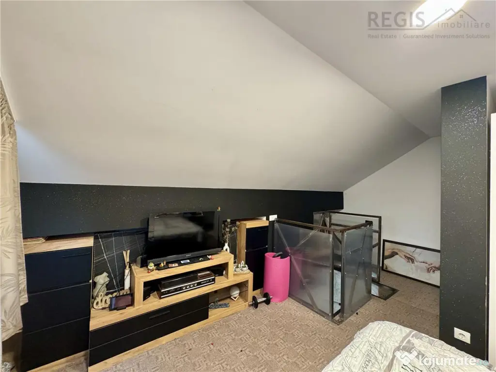 ID intern 5573 REGIS Imobiliare va propune spre vanzare o casa moderna, situata intr-o zona linistita din Lunca Calnicului, la doar 20 minute de Brasov. Locuinta este ideala pentru o familie care isi doreste confort, intimitate si un stil de viata echilibrat, intr-un cadru natural, departe de agitatia urbana, dar totodata bine conectat la oras. Caracteristici: - Suprafata utila 180 mp - Suprafata teren 750 mp - Regim de inaltime P Pod - Finalizata in 2021 - 4 dormitoare, din care unul este amenajat ca spatiu de birou - 3 bai, din care o baie este exterioara - Living spatios, cu acces direct pe terasa - Bucatarie mobilata si uitilata complet - Camara - Spalatorie Finisaje premium: -Gresie Villeroy amp; Boch -Parchet masiv de 2 cm grosime -Blat bucatarie din cuart -Riflaje de stejar -Pervaze interioare si exterioare din travertin Exterior: - Curtea din fata este partial pavata pentru a facilita accesul atat in casa cat si pentru automobile - Camera tehnica - Garaj si parcare acoperita - Gard de beton - Porti automate Detalii constructie: - Ferestre Salamander tripan (3 foi) all season, cu plase de insecte si rulouri incastrate - Ziduri din caramida Porotherm 35 cm - Izolatie exterioara cu vata bazaltica 20 cm - Inveltoare ndash; tigla - Pod izolat Alte informatii: - Curent trifazat - Fosa septica ecologica si put - Centrala pe lemne - Centrala separata pentru apa calda (pe timpul verii) Comisionul agentiei este de 2% TVA din valoarea tranzactionata. Pentru mai multe detalii si vizionari: 0774 994 172; Va asteptam cu drag la vizionare! Număr Băi: 3 Utilități: Curent