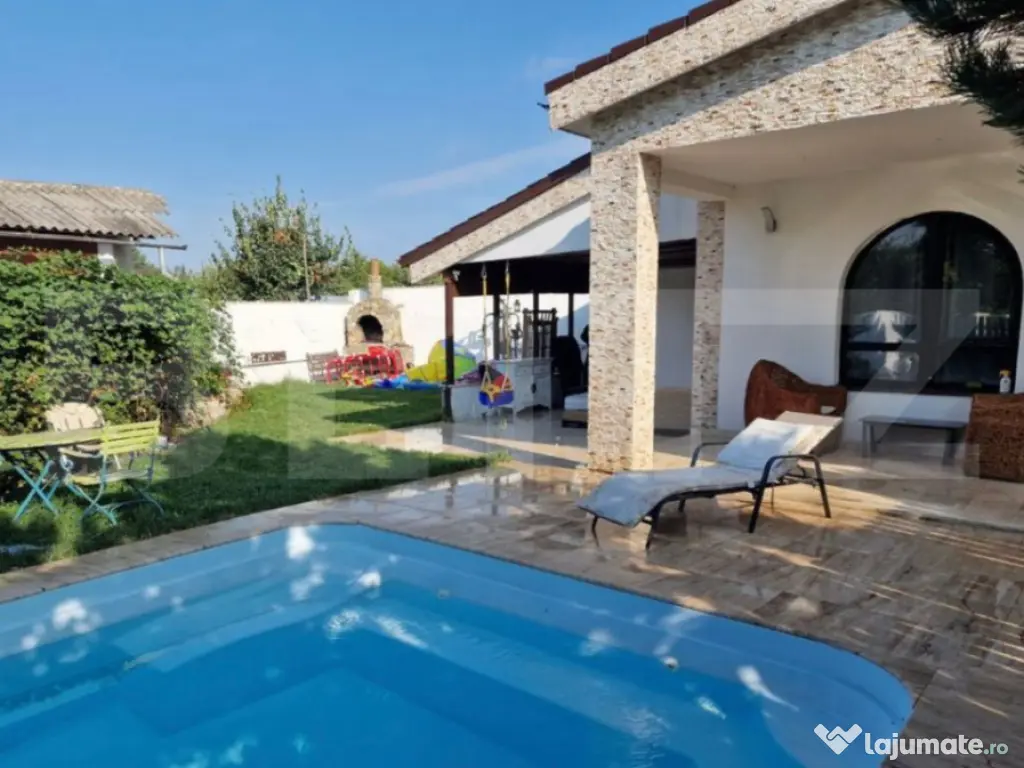 * Piscină de 60 m³, cu dimensiuni de 8 m lungime și 4 m lățime, ideală pentru relaxare în sezonul cald.