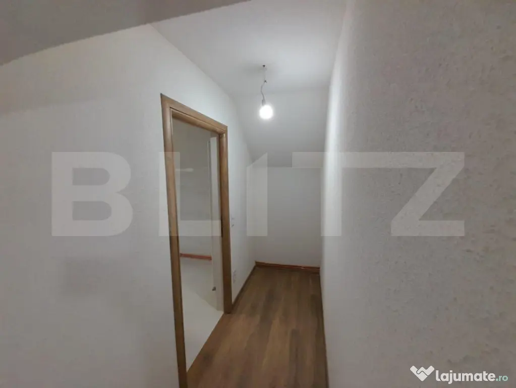 Etaj: 2 dormitoare spațioase, baie modernă și un lounge suplimentar pentru relaxare.