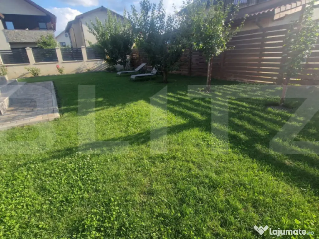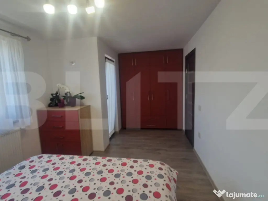 Această casă individuală P+1 este o adevărată bijuterie, situată într-o zonă în plină dezvoltare, la doar 20 de minute de Brașov. Construită din cărămidă in anul 2020 și izolată cu polistiren de 10 cm, beneficiază de materiale de cea mai bună calitate, aspect vizibil chiar și pentru nespecialiști. Locuința dispune de un living generos, bucătărie închisă complet mobilată și utilată, 5 camere dintre care 4 dormitoare – unul situat la parter, băi spațioase cu finisaje moderne, cadă și duș, precum și un balcon cu vedere spre curtea amenajată cu gazon, pomi fructiferi și flori. Curtea este îngrijită cu mult bun gust, accesul făcându-se prin poartă electrică, iar parcarea este asigurată pentru două autoturisme. Farmecul special al acestei case îl reprezintă pivnița de 15 mp, curată și funcțională – un element rar întâlnit în zonă. Există și anexe utile în curte, precum și un pod izolat cu vată minerală, oferind spațiu suplimentar de depozitare. Incalzirea este asigurată prin pardoseală la parter și calorifere la etaj, casa fiind eficientă energetic (clasa B+), cu costuri reduse iarna. Gardul impunător, realizat din aluminiu, lemn masiv și beton, a avut un cost de 15.000 euro, reflectând standardele înalte ale proprietății. Dispune de instalatia pentru sistem de alarmă și camere video, viitorul proprietar doar sa le monteze , Apa trasa si in curte, iar canalizarea modernă necesită întreținere rară. Aproape de stație autobuz, magazine și restaurante, această casă este pregătită să devină „acasă”. Vă așteptăm la vizionare! Cod ofertă / ID BLITZ: P150135 Id intern: P150135 Număr niveluri imobil: 1 Număr Băi: 2 Nr. locuri parcare: 2 Curent Apă Gaz