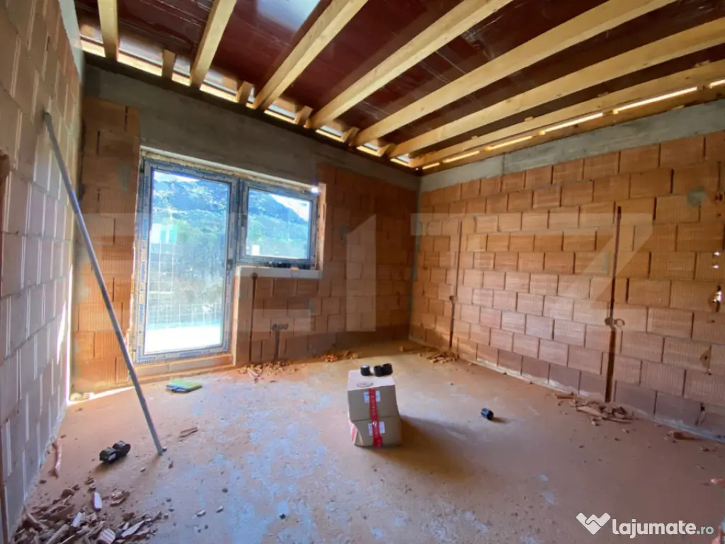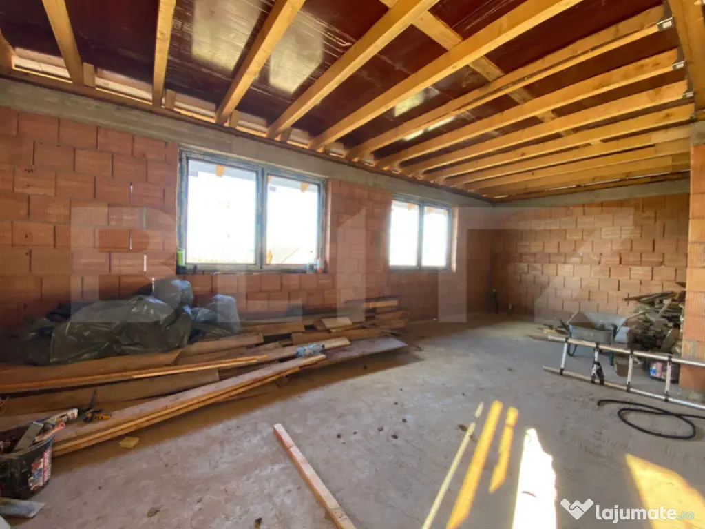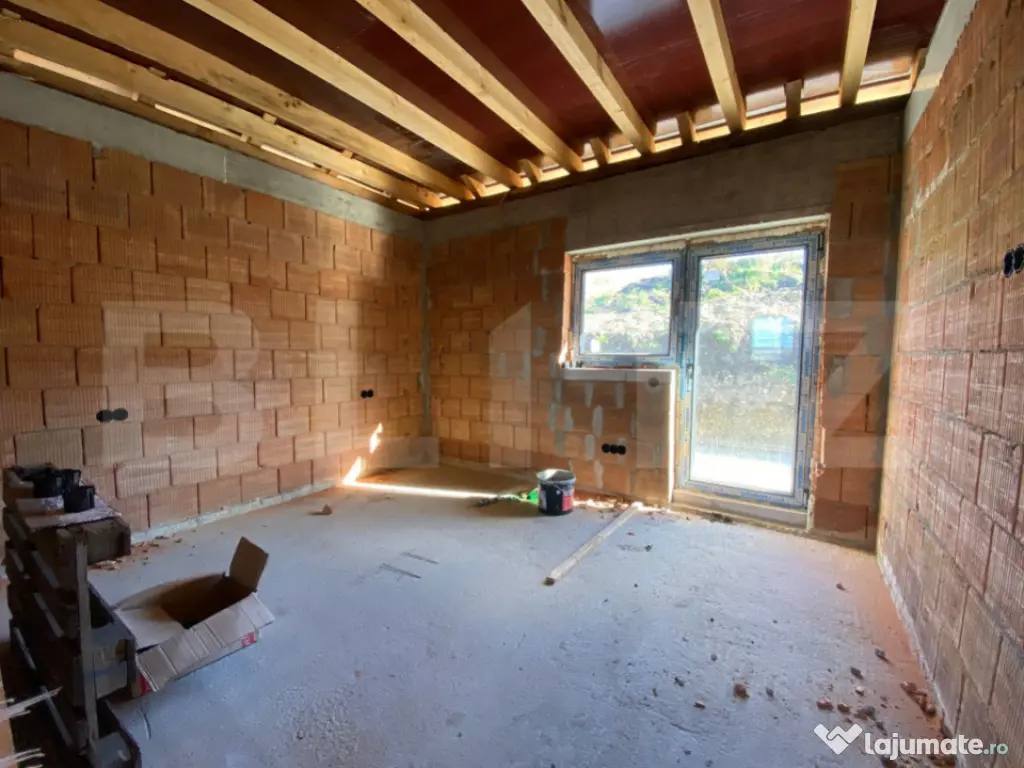 Blitz va prezinta spre vanzare o casa moderna pe parter, situata in Apahida, ideala pentru o familie care isi doreste confort, liniste si o curte generoasa. Proprietatea se preda la stadiul de semifinisat, cu posibilitatea de personalizare dupa preferintele viitorului proprietar. Detalii proprietate: -Suprafata utila: 103 mp -Teren: 500 mp -Curte amenajata cu pavaj, gazon si gard complet montat -In spate se va construi un foisor dotat cu gratar si cuptor pentru pizza -Loc de parcare amenajat in fata casei Constructie: -Casa din caramida, cu hidroizolatie la fundatie -Acoperis din tigla -Posibilitate de amenajare a podului intr-un spatiu util -Incalzire in pardoseala -Toate utilitatile: apa, gaz, curent, canalizare Compartimentare: -Bucatarie open-space cu living -3 dormitoare 1- baie (Exista posibilitatea de modificare a compartimentarii – se poate mari zona de living si bucatarie, pastrand doar 2 dormitoare, in functie de preferinta cumparatorului.) Alte avantaje: -Constructorul poate livra casa complet finisata, contra cost -Stadiul actual permite alegerea materialelor si finisajelor dorite -Zona linistita, cu acces facil catre Cluj-Napoca Blitz va asteapta la vizionare pentru a descoperi aceasta casa practica si moderna, perfecta pentru o familie care cauta un camin personalizabil, aproape de oras si de natura. Cod ofertă / ID BLITZ: P156698 Id intern: P156698 Număr Băi: 1 Curent Apă Canalizare Gaz