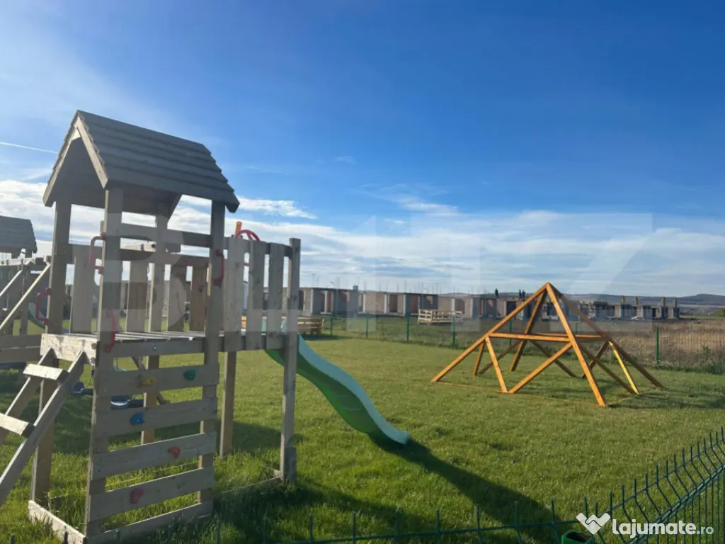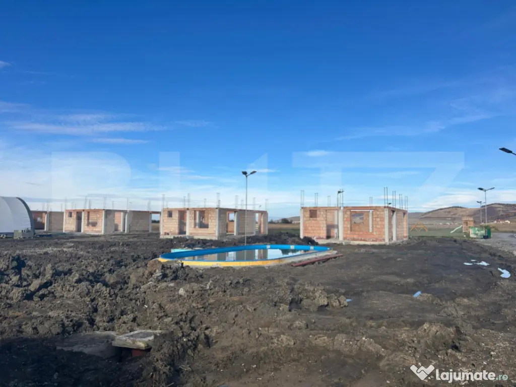 Blitz va ofera casa moderna,in constructie, pe doua nivele,design modern si calitate superioara intr-un cartier de lux la doar 10 minute de Targu Mures. Pe 700 mp teren,curte generoasa, spatii verzi in imprejurimi,drum asfaltat si iluminat stradal deja pe pozitie,chiar daca lucrarile inca nu s-au finalizat. Tot aici locuitorii vor beneficia de spatiu de joaca pentru copii,piscina incalzita,pista de alergat, grill zone pentru weekendurile relaxante alaturi de cei dragi. Casa se vinde in rosu,avand posibilitatea de finisare individuala sau direct la dezvoltator. Va invitam la vizionare! Cod ofertă / ID BLITZ: P156736 Id intern: P156736 Număr niveluri imobil: 1 Număr Băi: 2 Nr. locuri parcare: 1 Curent Apă Canalizare Gaz