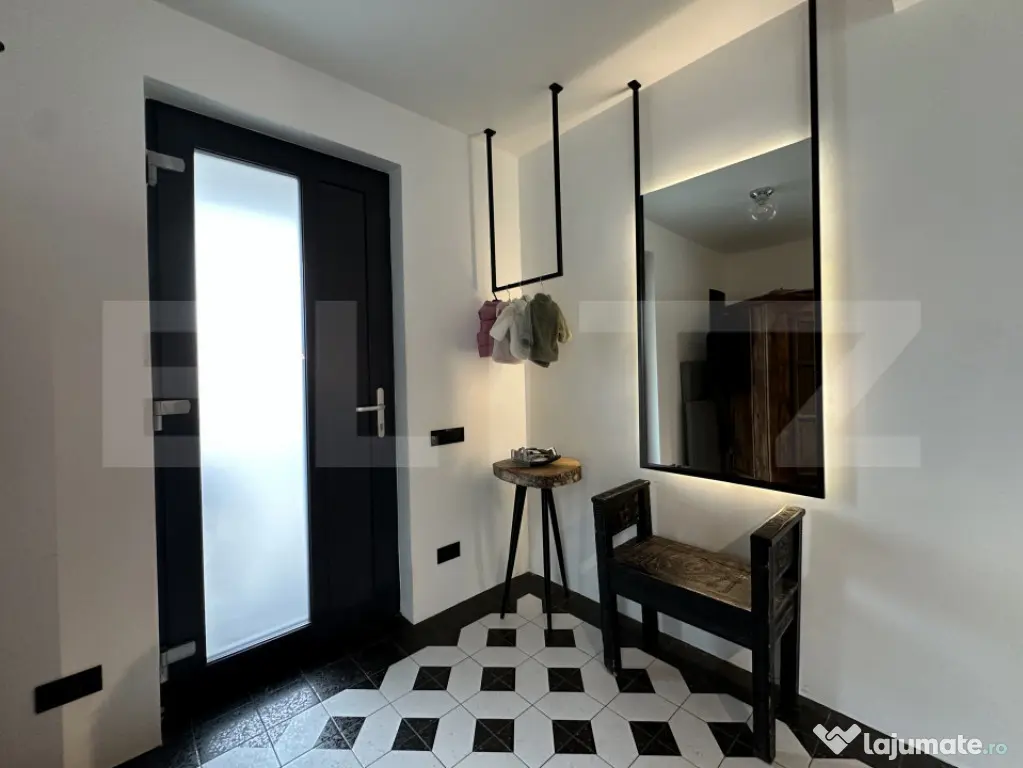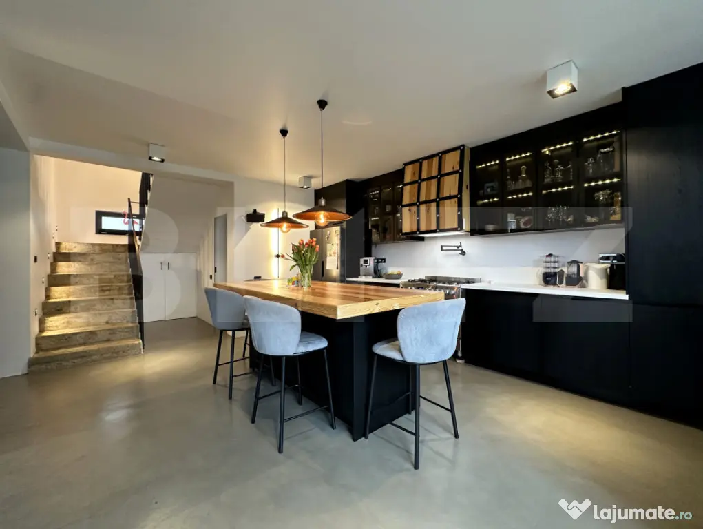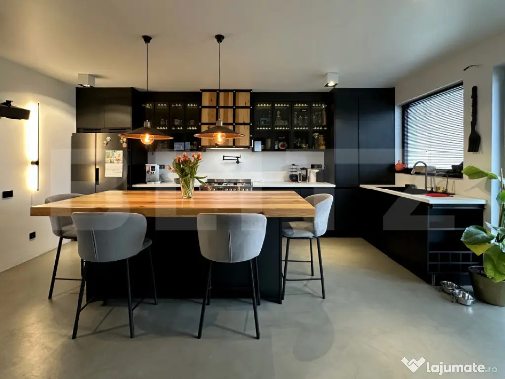 Vă propunem spre vânzare o proprietate diferită, evidențiată printr-un design interior în stil industrial, compartimentare eficientă și o amplasare excelentă, la intersecția dintre Cluj și Baciu, într-o zonă accesibilă, exclusiv de case.