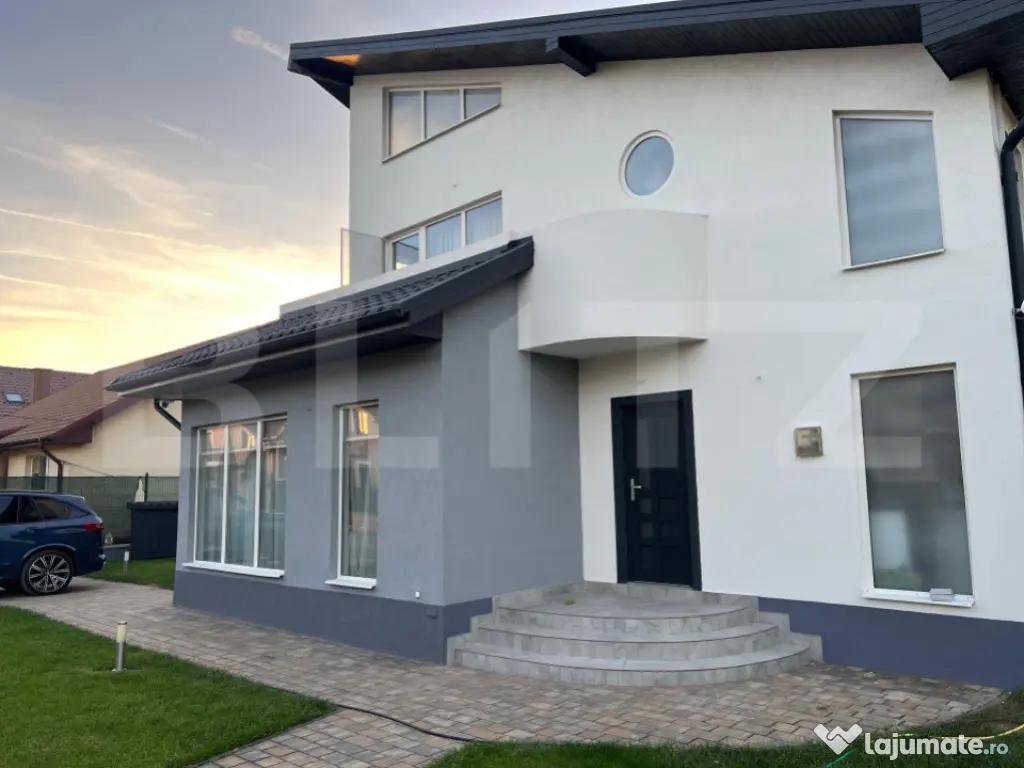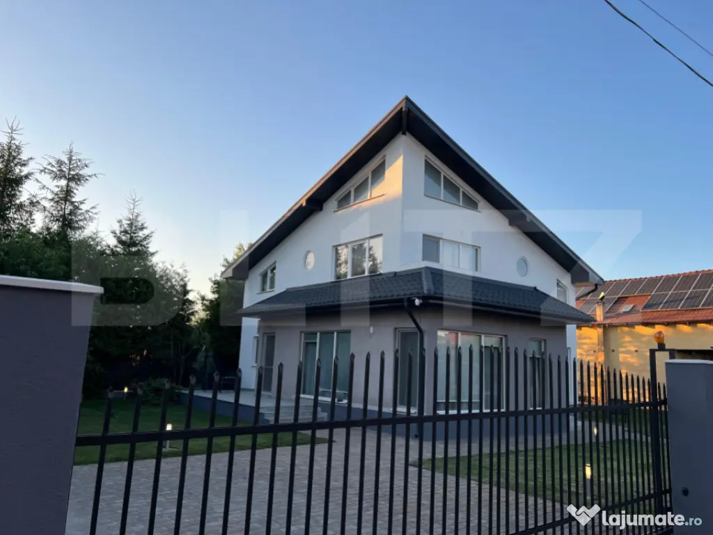 Complet renovata - ca noua! Casa moderna la cheie – 4 camere, birou, complet amenajata – zona str. Nordului, Tg. Mures Locuinta unifamiliala spatioasa si luminoasa, cu suprafata utila de 175 mp (213 mp construiti), situata intr-o zona foarte linistita, pe strada privata, la iesirea din Targu Mures spre Sangeorgiu de Mures, in zona strazii Nordului / 7 Noiembrie. Casa se vinde complet amenajata – interior, exterior, curte – fiind ideala pentru o familie care doreste sa se mute imediat, fara investitii suplimentare. Suprafata terenului: 450 mp + 50 mp cota parte drum privat Toate utilitatile sunt disponibile si bransate: apa, gaz, curent, canalizare Acces facil: 100 m de drum asfaltat Compartimentare: Parter: • Living si dining spatios (42 mp) • Bucatarie separata (14 mp) • Birou (14 mp) – poate fi folosit ca dormitor la parter • Camara + debara • Baie • Terasa (16 mp) Etaj: • 3 dormitoare (18 mp, 15 mp, 14 mp) • 2 dressing-uri (3-4 mp fiecare) • Baie • Balcon Curte complet amenajata: • Pavaj premium Semmelrock (model Appia Antica, 100 lei/mp) • Gazon + copaci ornamentali • Iluminat exterior cu stalpi programabili (control smart) • Gard frontal cu soclu si stalpi din beton + plasa metalica • Poarta auto de 6 metri, automatizare Nice, acces separat pentru 2 masini, interfon si modul smart pentru control de la distanta • Loc de parcare pentru 2 masini • Cabana din lemn pentru depozitare unelte Dotari tehnice si confort: • Panouri fotovoltaice cu baterie de 15 kW • Incalzire cu centrala termica pe gaz • Aer conditionat in living si in unul dintre dormitoare • Ferestre mari, suprafete vitrate generoase, lumina naturala excelenta Locatie excelenta: • Spitalul Judetean – 2 km • Centru Tg. Mures – 3.5 km • Lidl – 800 m • Spitalul Medex – 1.3 km • Acces pietonal pana la zona de agrement Weekend • Transport public la doar 700 m Cod ofertă / ID BLITZ: P155547 Id intern: P155547 Număr niveluri imobil: 1 Număr Băi: 2 Nr. locuri parcare: 2 Curent Apă Canalizare Gaz Sistem irigaţie Climă